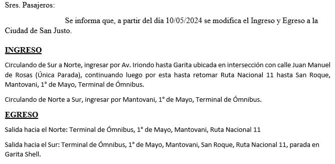 Habrá además, desde el 10 de mayo un cambio en el ingreso y egreso a la ciudad de San Justo – ver imagen abajo