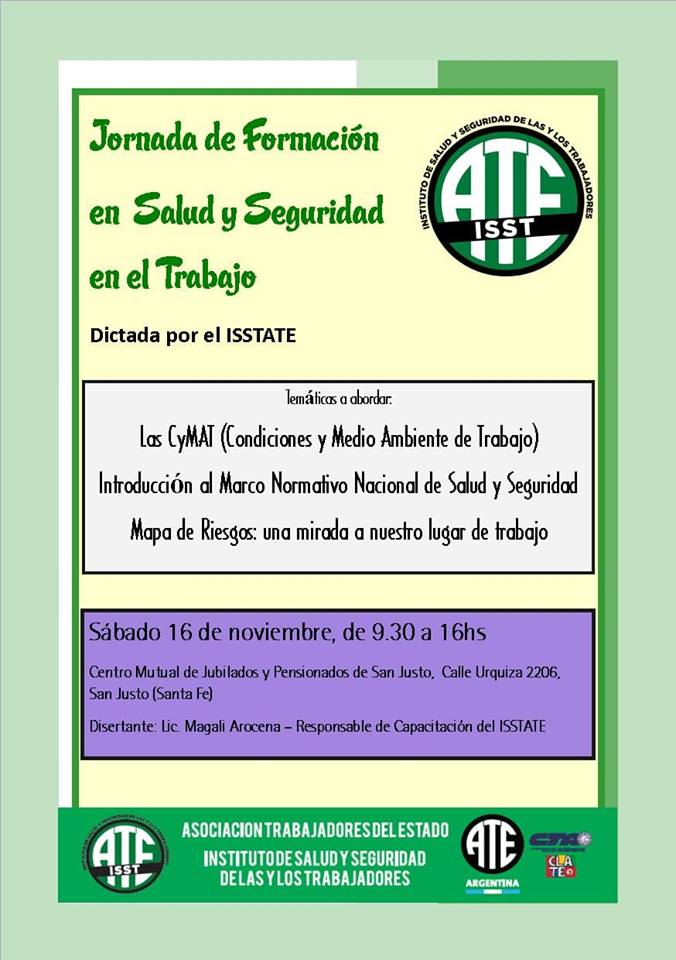 Dictada por el Instituto de Salud y Seguridad de las y los Trabajadores (ISST), se realizará la Jornada de Formación en Salud y Seguridad en el Trabajo.