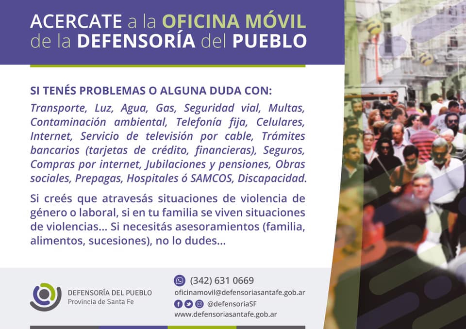 La oficina móvil de la Defensoría del Pueblo de la provincia de Santa Fe atenderá en la localidad de San Martín Norte el día 13 de marzo próximo.