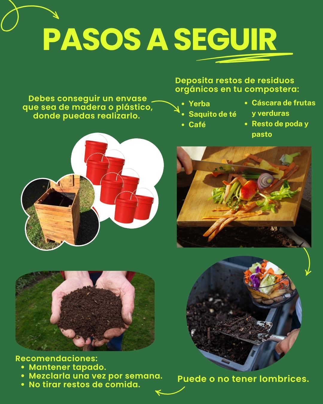 En este carrusel te mostramos cómo realizar un compost de manera simple. Menos residuos, más aprovechamiento. Sumate a compostar en casa.