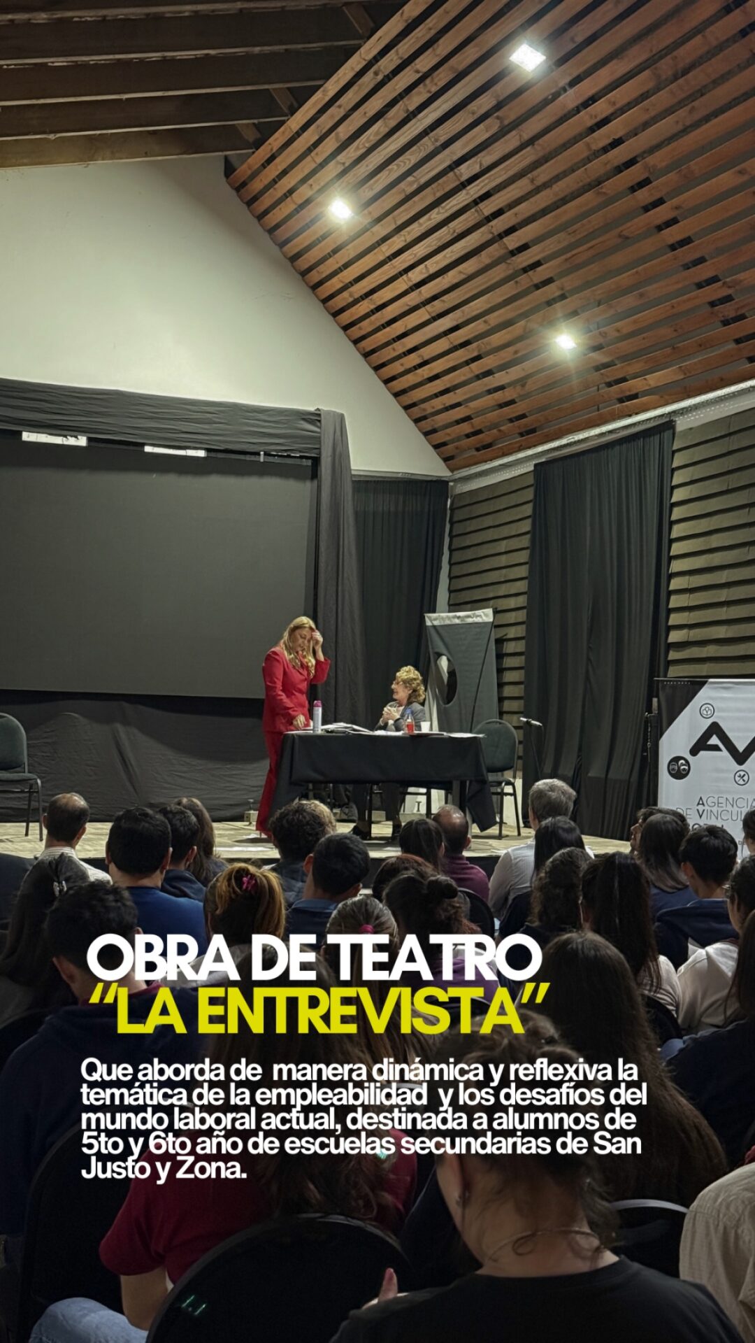 La obra forma parte del programa AyudArte de la Oficina de Empleo de la Municipalidad de Junín y busca generar una experiencia de aprendizaje positiva para los jóvenes al darles herramientas prácticas para acceder al mundo laboral, utilizando el teatro para empatizar, entretener y captar la atención de los espectadores de una forma más dinámica.
