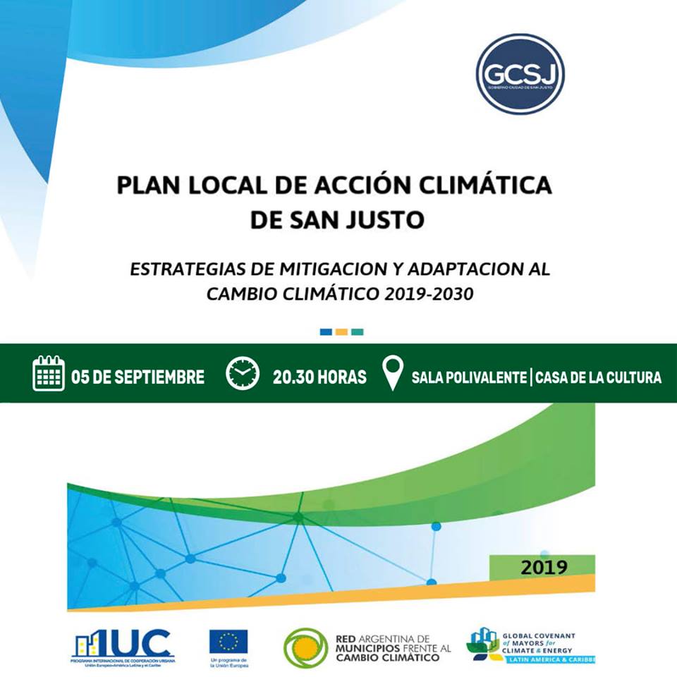 El intendente Municipal Nicolás Cuesta y el Coordinador de Ambiente Ulises Reno, invitan a la presentación del “Plan de Acción Climática de San Justo”, a cargo del Licenciado Francisco Tomatis.