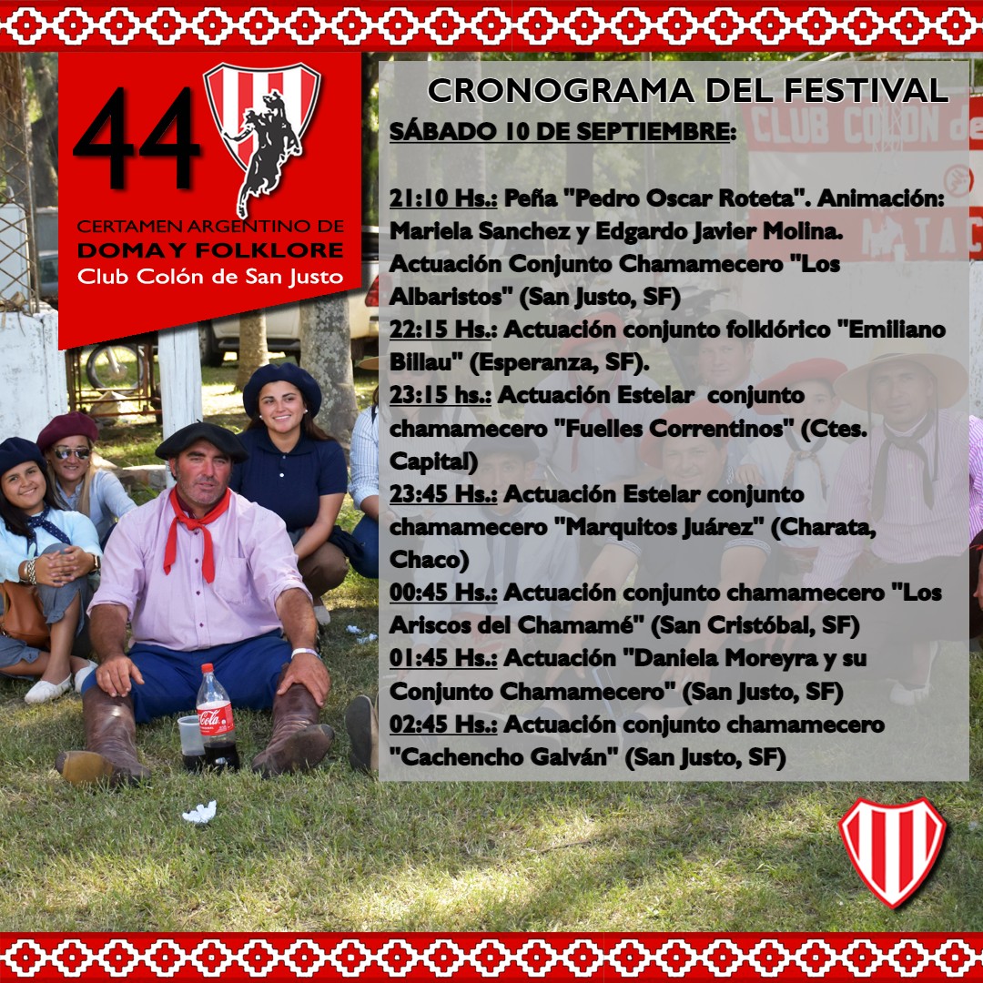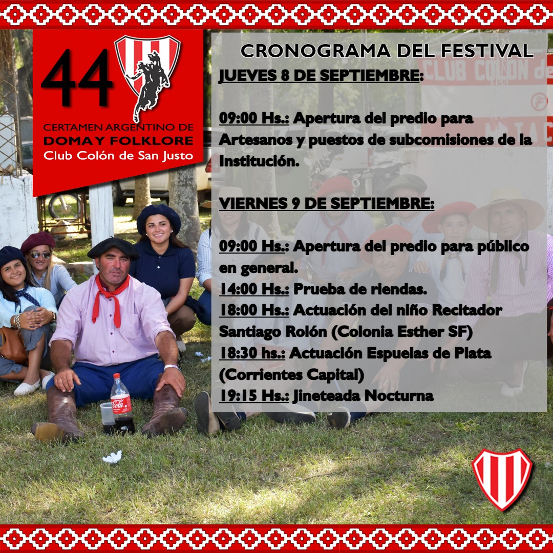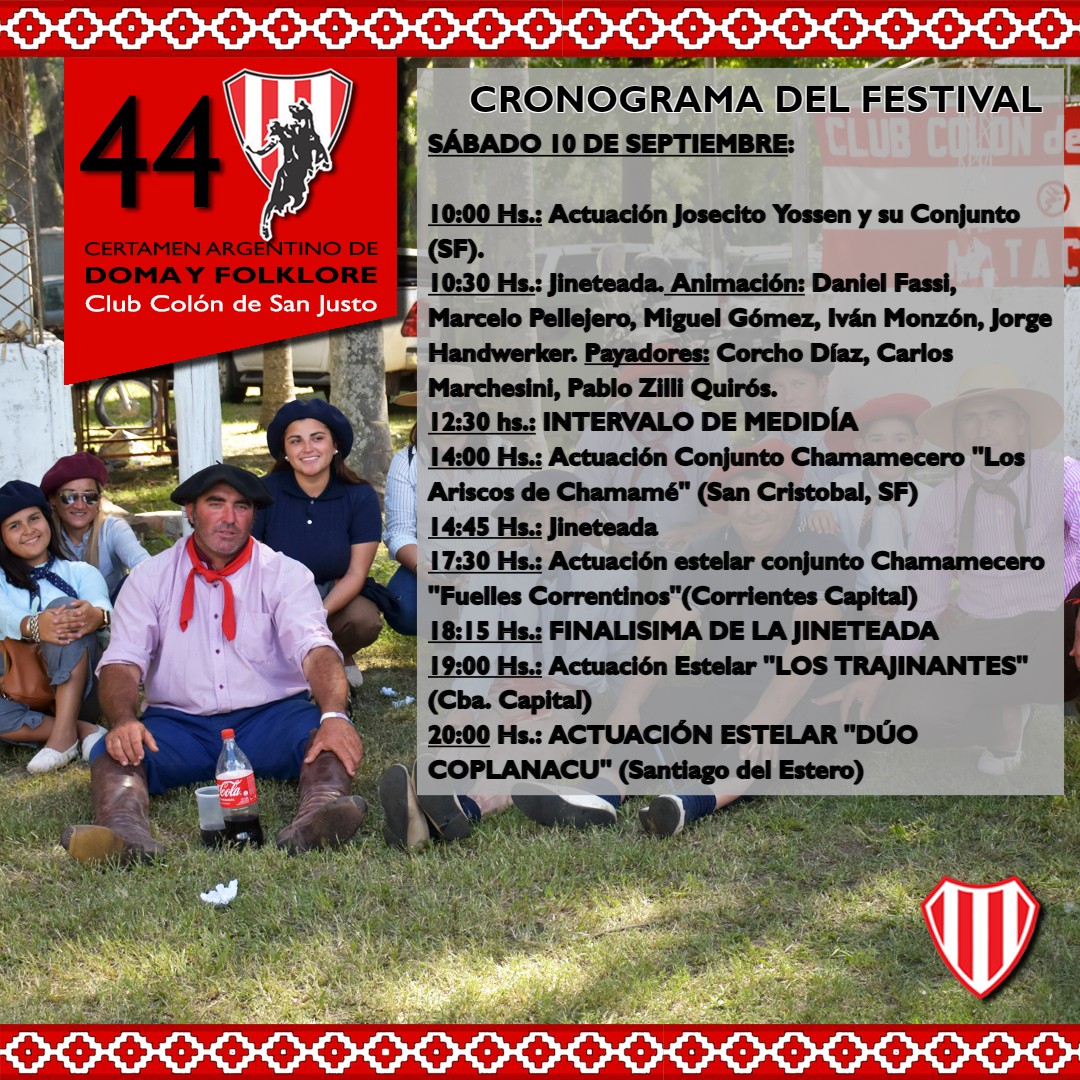 El 44° Certamen Argentino de Doma y Folklore del Club Colón de San Justo ya tiene toda su cartelera lista.
