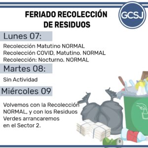 El Gobierno de la ciudad de San Justo dio a conocer la recolección de residuos para el próximo fin de semana largo.