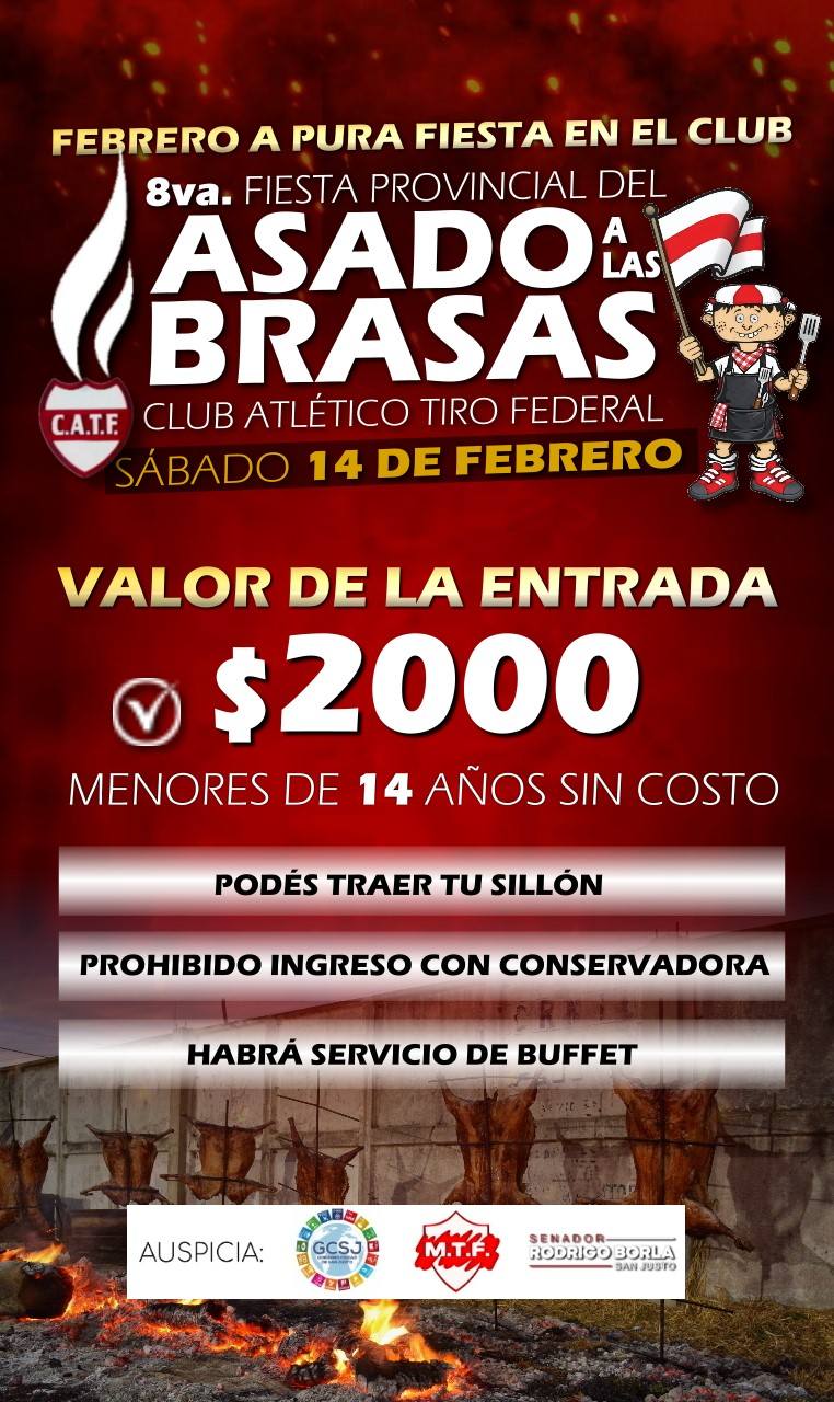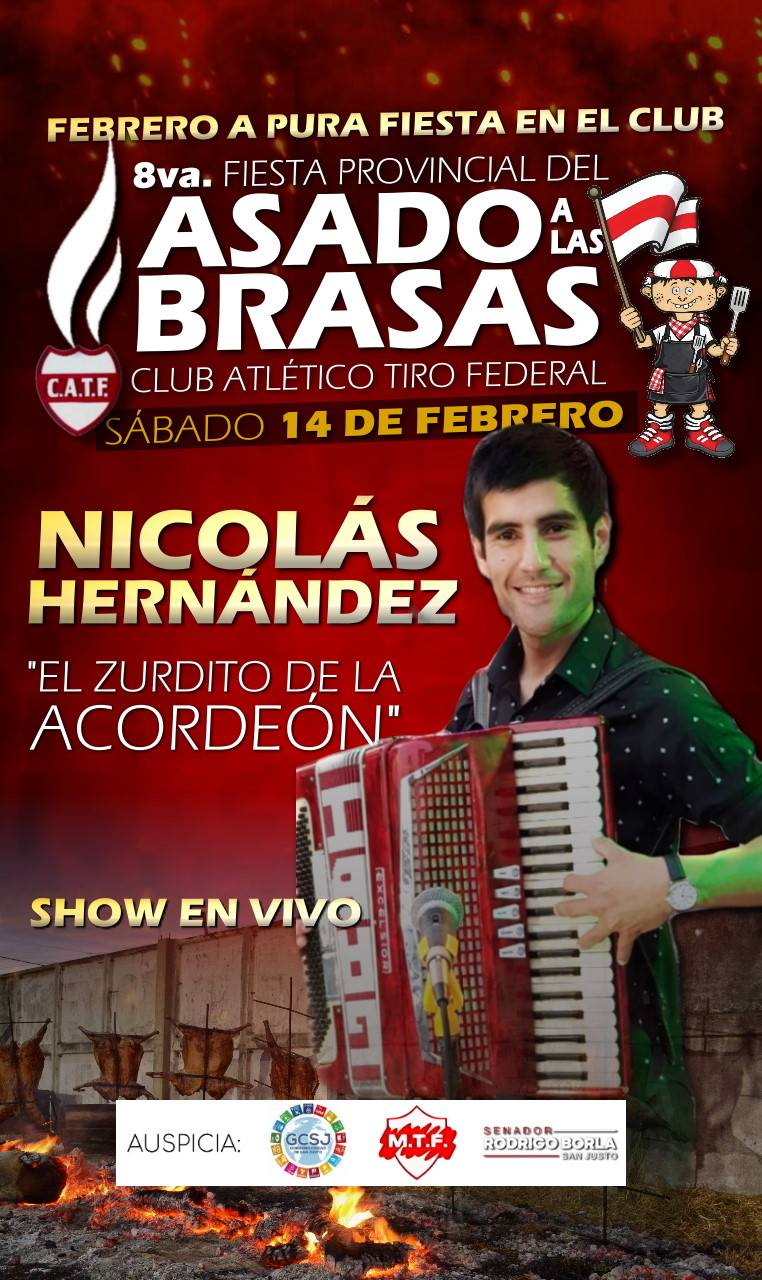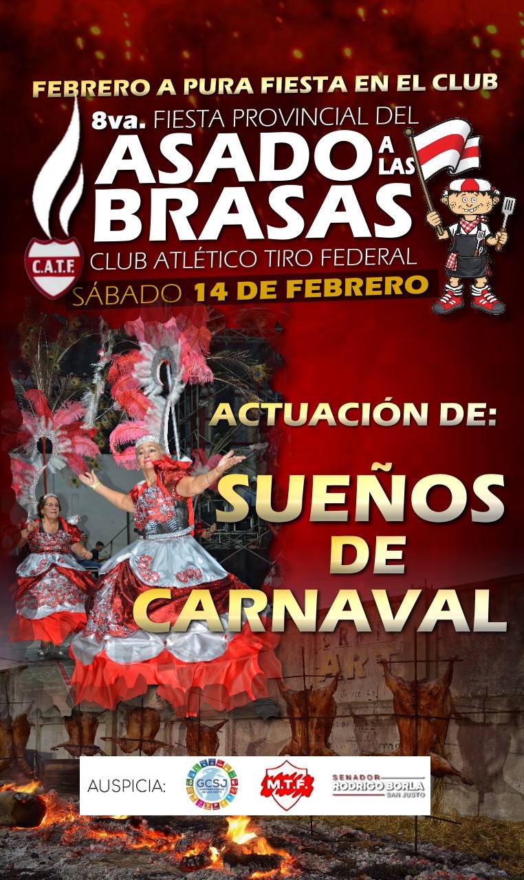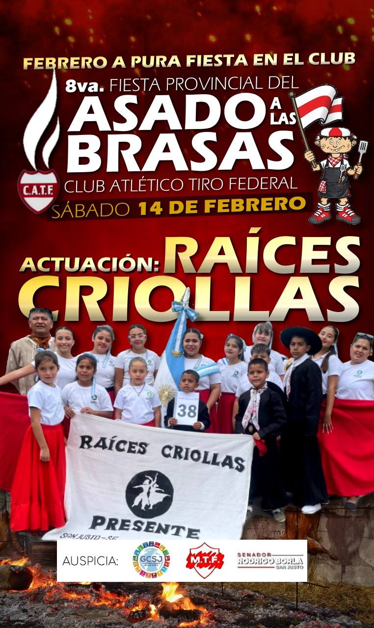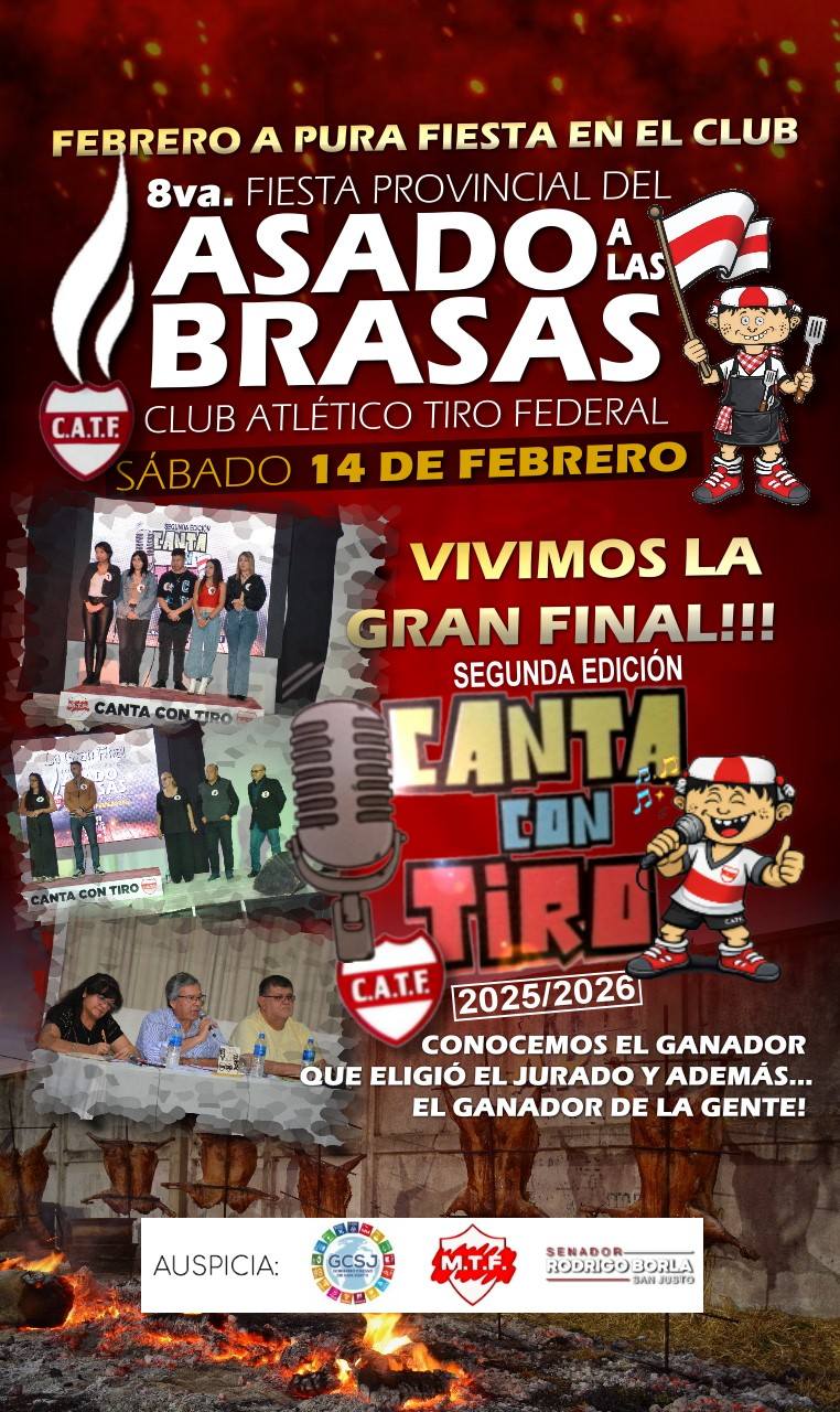 El Club Atlético Tiro Federal de San Justo te espera este sábado 14 de febrero para vivir una noche inolvidable, llena de sabor, música y emoción.