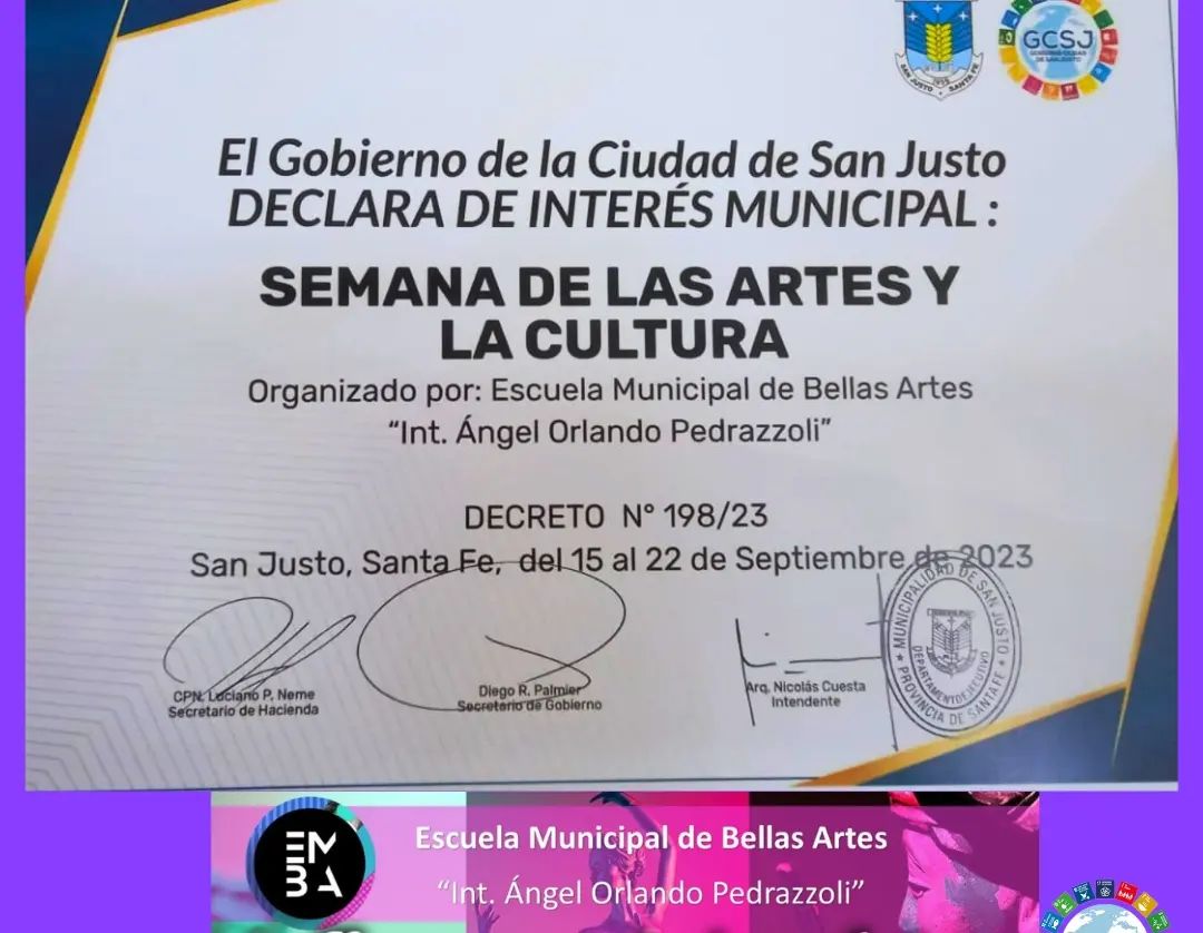 Se desarrolla la Semana de las Artes y la Cultura 2023 organizada por la Escuela Municipal de Bellas Artes “Intendente Ángel Orlando Pedrazzoli” de nuestra ciudad.