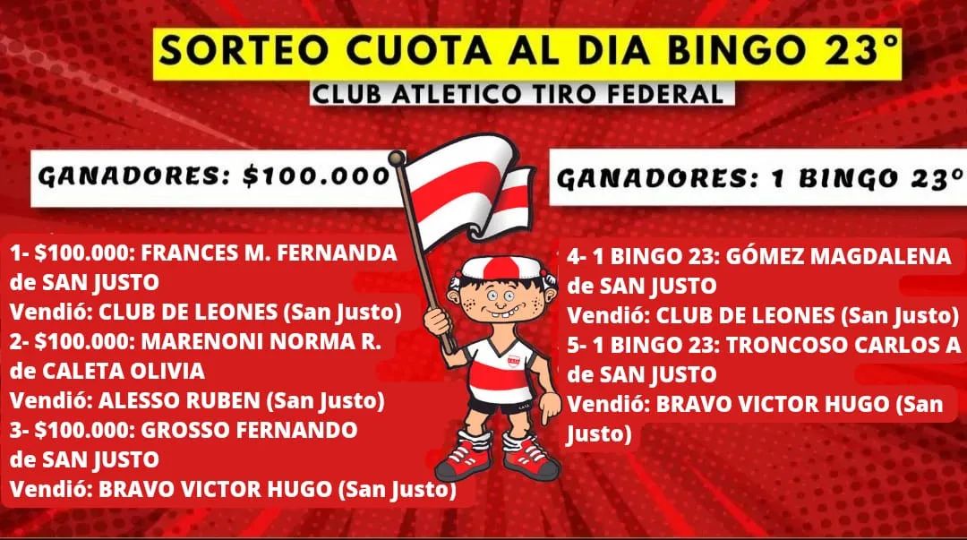 Se realizó este miércoles, un nuevo sorteo del cupón solidario del Club Tiro Federal, a continuación damos a conocer los ganadores:
