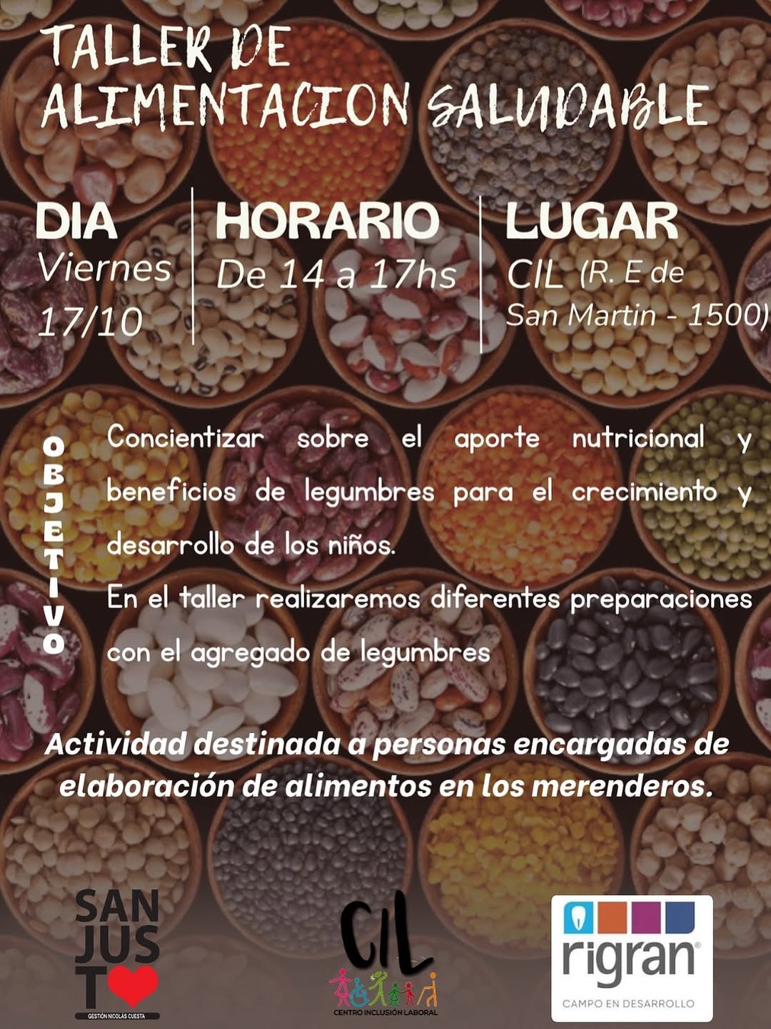 Te invitamos a esta actividad, destinada a concientizar sobre el aporte nutricional y los beneficios de las legumbres para el crecimiento y desarrollo de los niños y niñas y a personas encargadas de la elaboración de alimentos en los merenderos.