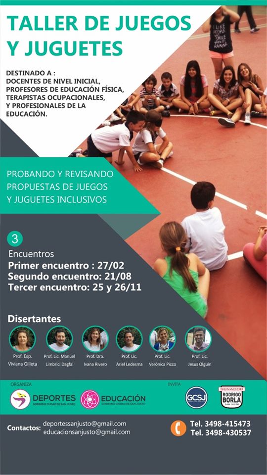 Bajo la consigna “Probando y revisando propuestas de juegos y juguetes inclusivos”, es que desde la Coordinación de Deportes junto al área de Educación del Gobierno de la Ciudad se han programado tres talleres a desarrollarse en el transcurso de este año.