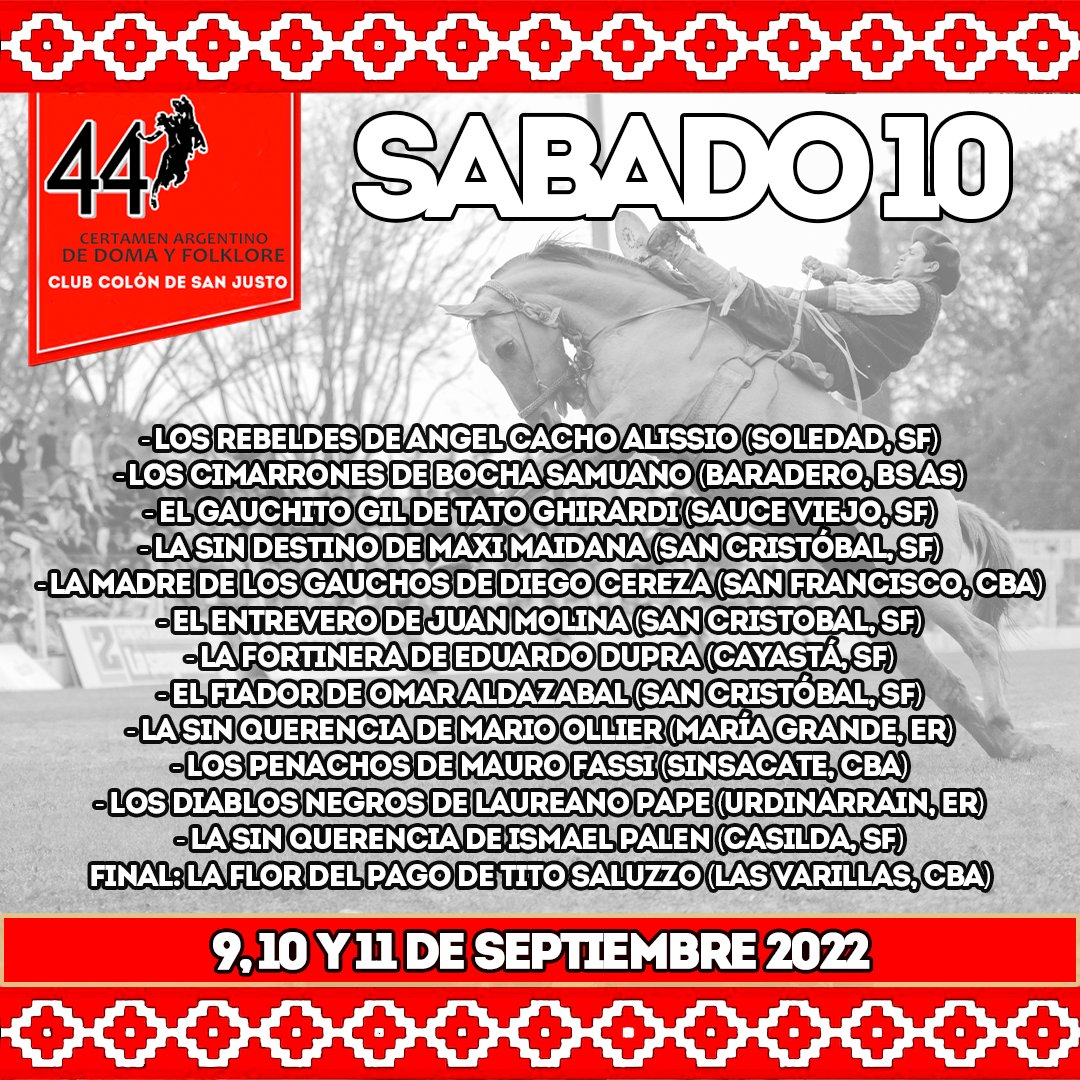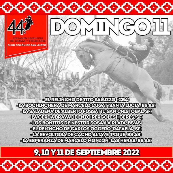 Tropillas que estarán presentes en el 44° Certamen Argentino de Doma y Folklore de Colón de San Justo