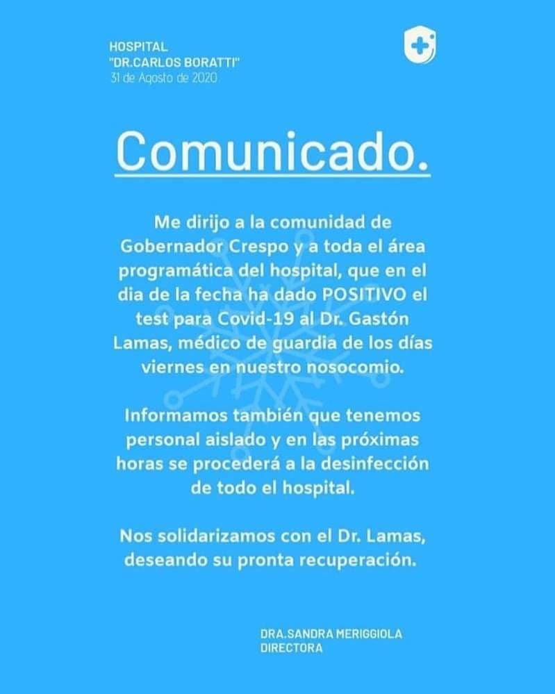 Se trata de un profesional que reside en la ciudad de Vera y cumple guardias los viernes en Gobernador Crespo.