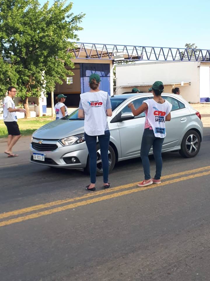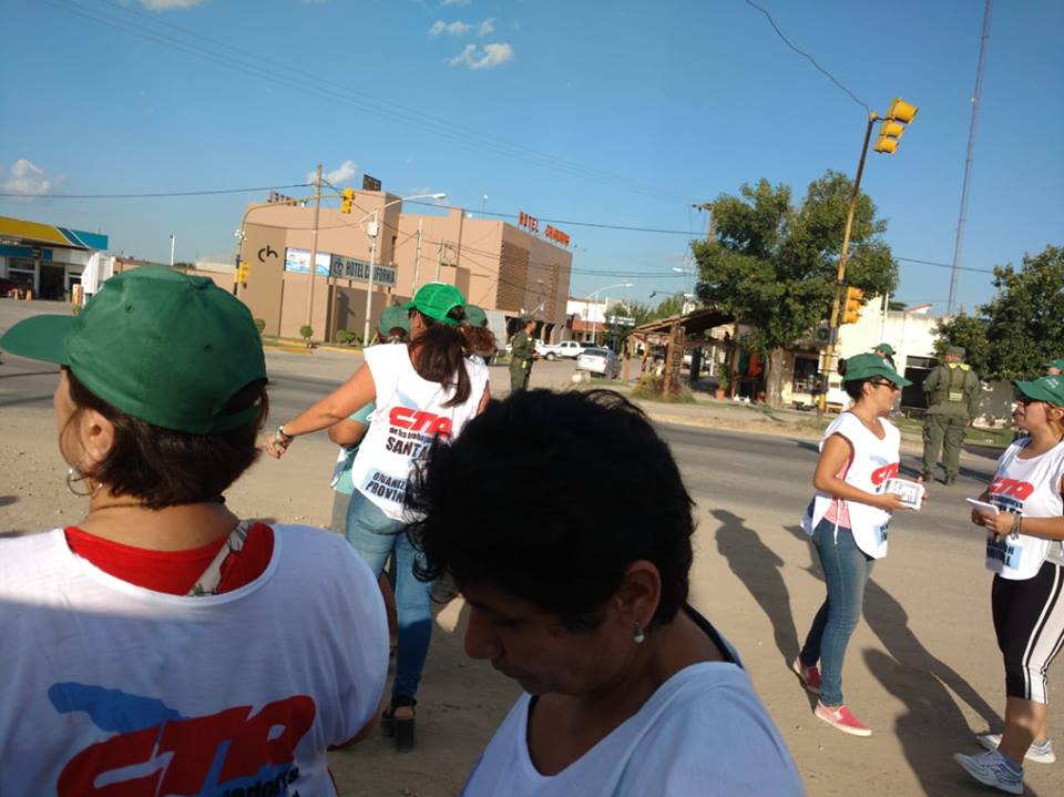 Representantes de distintos gremios que componen la Multisectorial CTA – CGT, realizaron esta tarde una volanteada en la intersección de ruta 11 y 9 de Julio de nuestra ciudad.