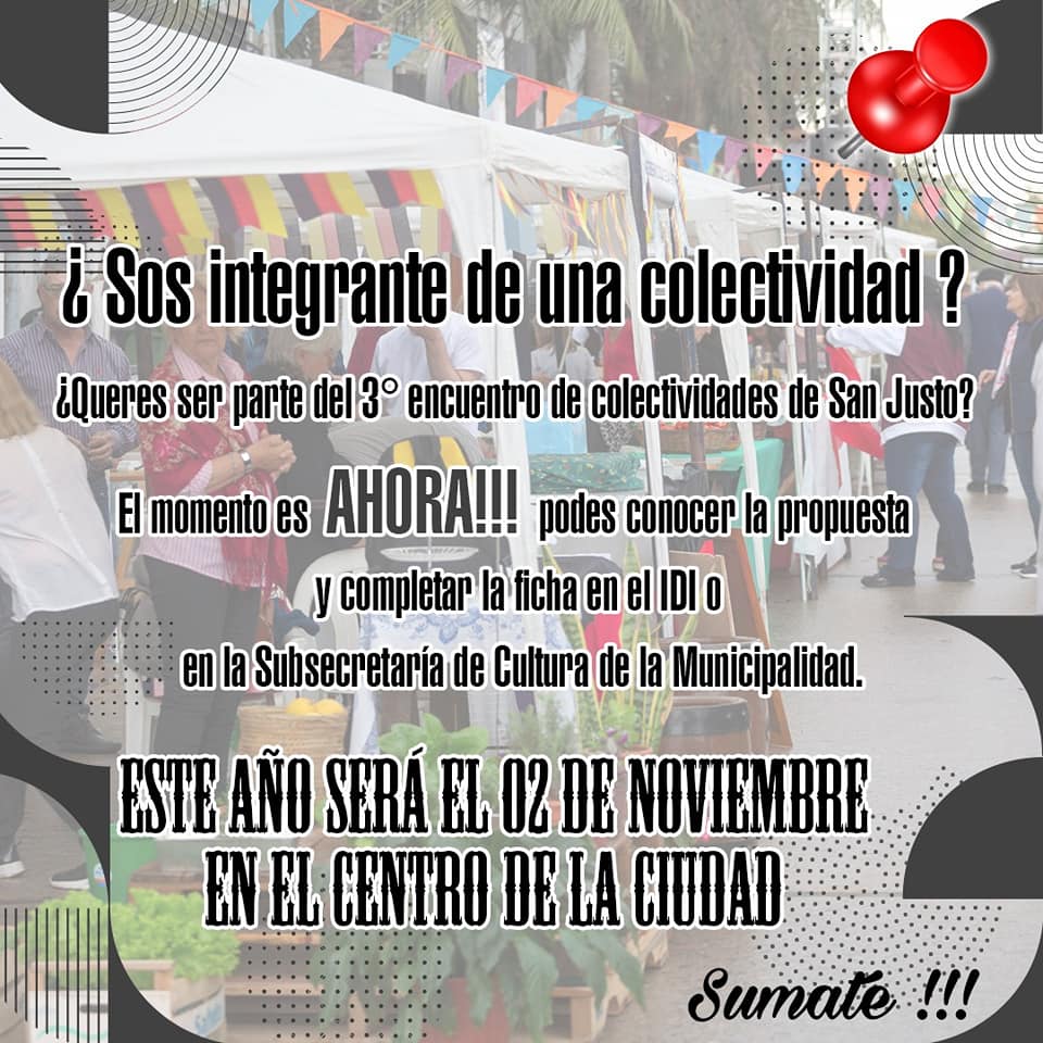 La Subsecretaría de Cultura del Gobierno de la Ciudad, invita a todos los miembros de las distintas colectividades a participar del 3er encuentro de Colectividades de San Justo a realizarse el próximo 2 de noviembre. Los interesados podrán conocer la propuesta a través de la Coordinadora de Cultura, Georgina Martinez.