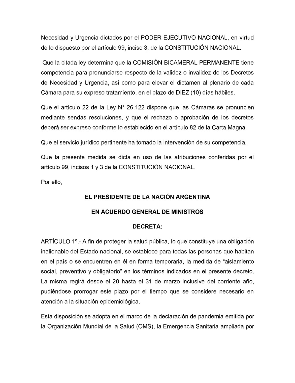 Aislamiento social preventivo obligatorio desde el 20 al 31 de marzo