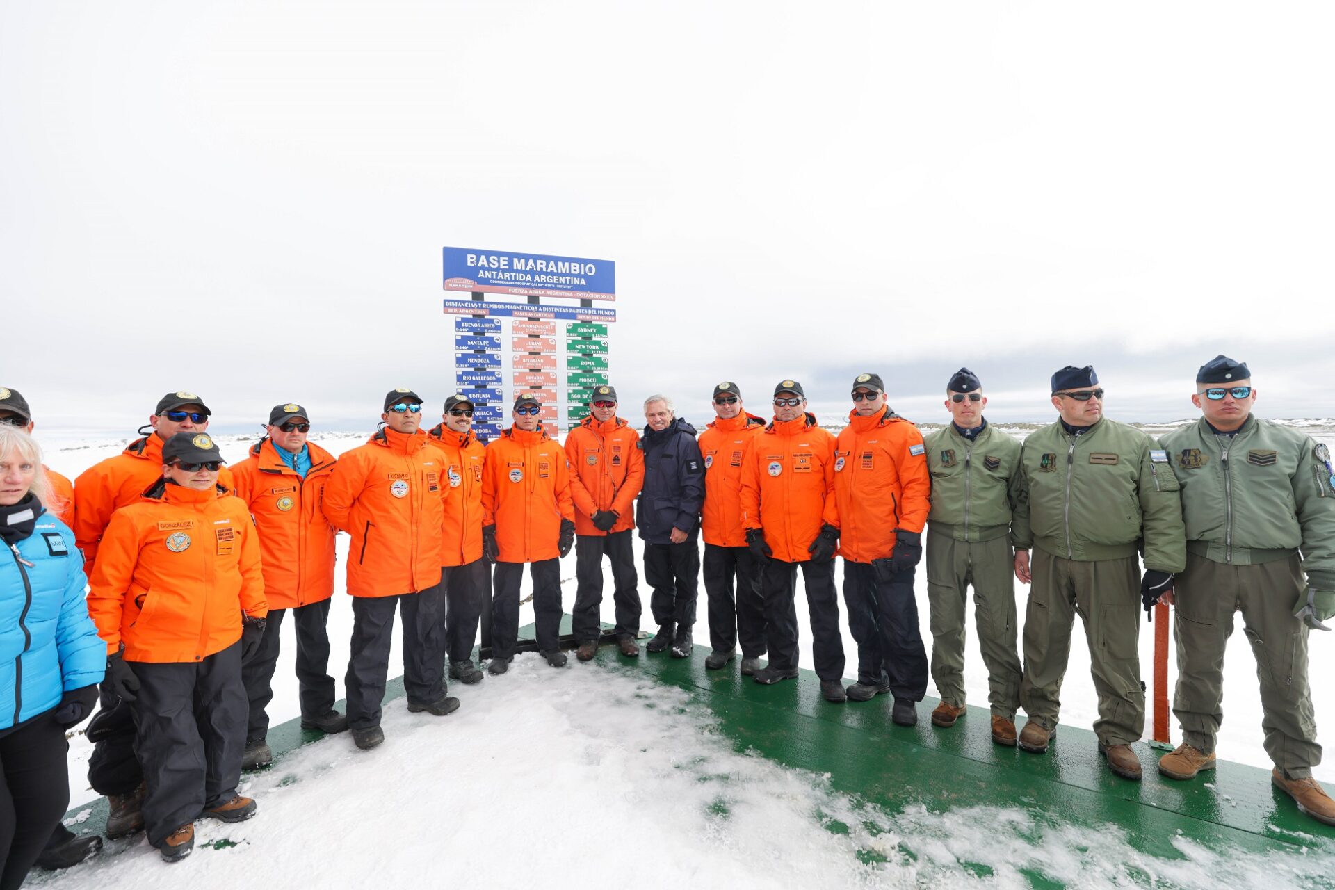 El mandatario visitó la Base Marambio acompañado por los ministros de Defensa, Jorge Taiana, de Relaciones Exteriores, Comercio Internacional y Culto, Santiago Cafiero, de Ciencia, Tecnología e Innovación, Daniel Filmus, de Educación, Jaime Perczyk, de Obras Públicas, Gabriel Katopodis, y de Ambiente y Desarrollo Sustentable, Juan Cabandié; las ministras de Desarrollo Social, Victoria Tolosa Paz, y de Salud, Carla Vizzotti, la portavoz de la Presidencia, Gabriela Cerruti, la secretaria Legal y Técnica, Vilma Ibarra, el vicejefe de Gabinete, Juan Manuel Olmos, el Secretario de Malvinas, Antártida y Atlántico Sur, Guillermo Carmona, y la presidenta del Directorio de Télam, Bernarda Llorente.