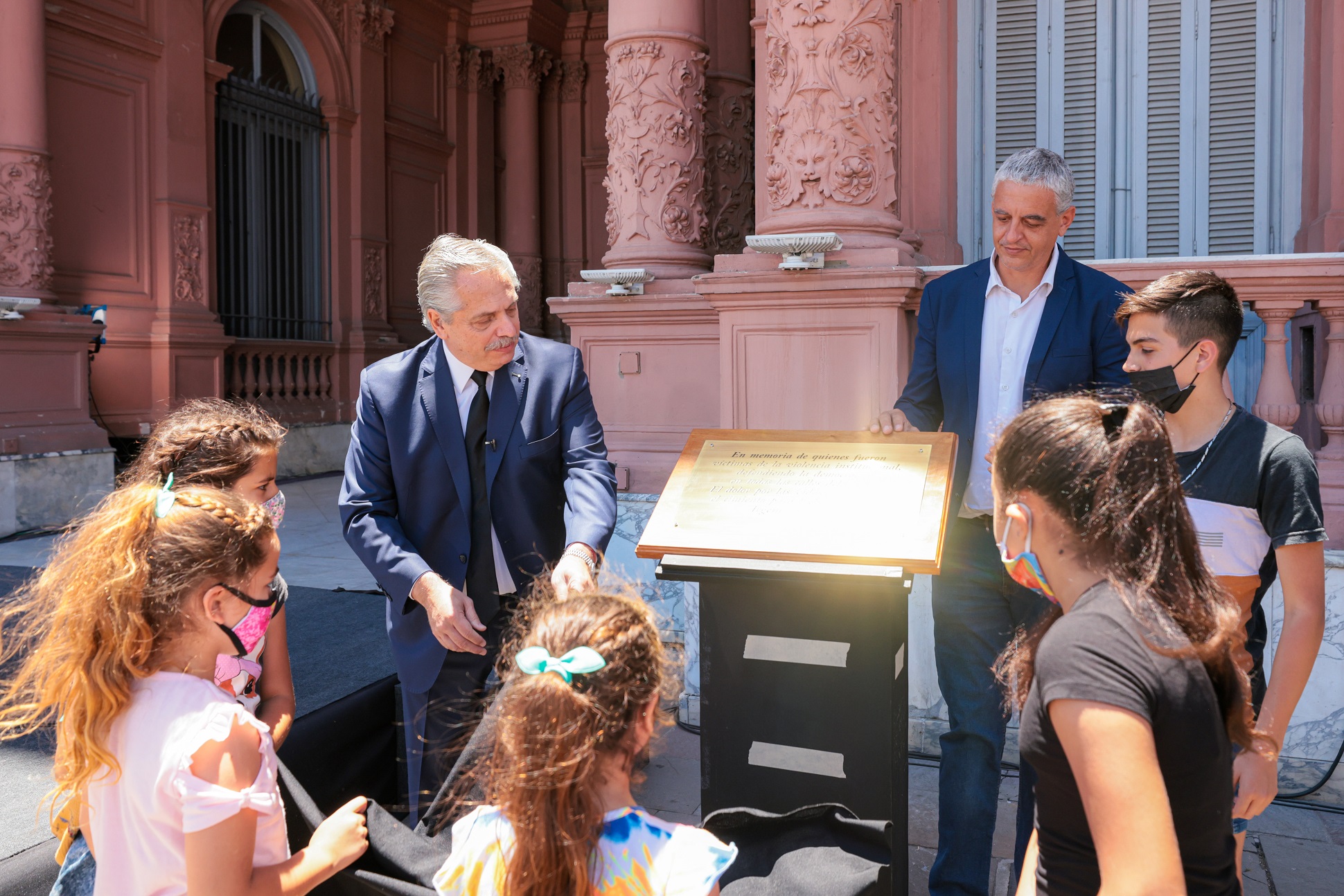 La ceremonia, que tuvo lugar en el patio externo del ingreso a Balcarce 50, donde Fernández descubrió una placa conmemorativa junto a chicos familiares de las víctimas y al secretario de Derechos Humanos, Horacio Pietragalla Corti. También estuvieron presentes el ministro del Interior, Eduardo de Pedro; el secretario General de la Presidencia, Julio Vitobello; la portavoz Gabriela Cerruti; familiares de los fallecidos y representantes de organismos de los derechos humanos.