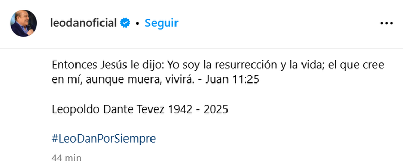 El texto cierra con palabras de la biblia. “Entonces Jesús le dijo: Yo soy la resurrección y la vida; el que cree en mí, aunque muera, vivirá. – Juan 11:25″. Como parte de su gira despedida, el cantante tenía pautadas para el 2025 presentaciones en Las Vegas y en Arizona.