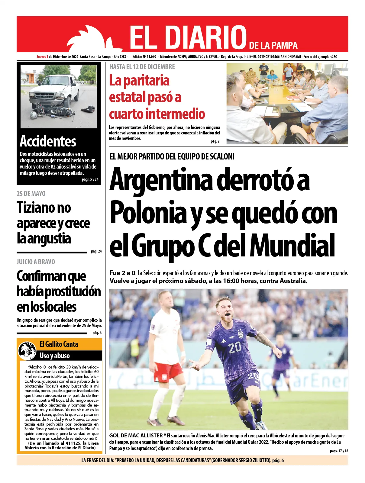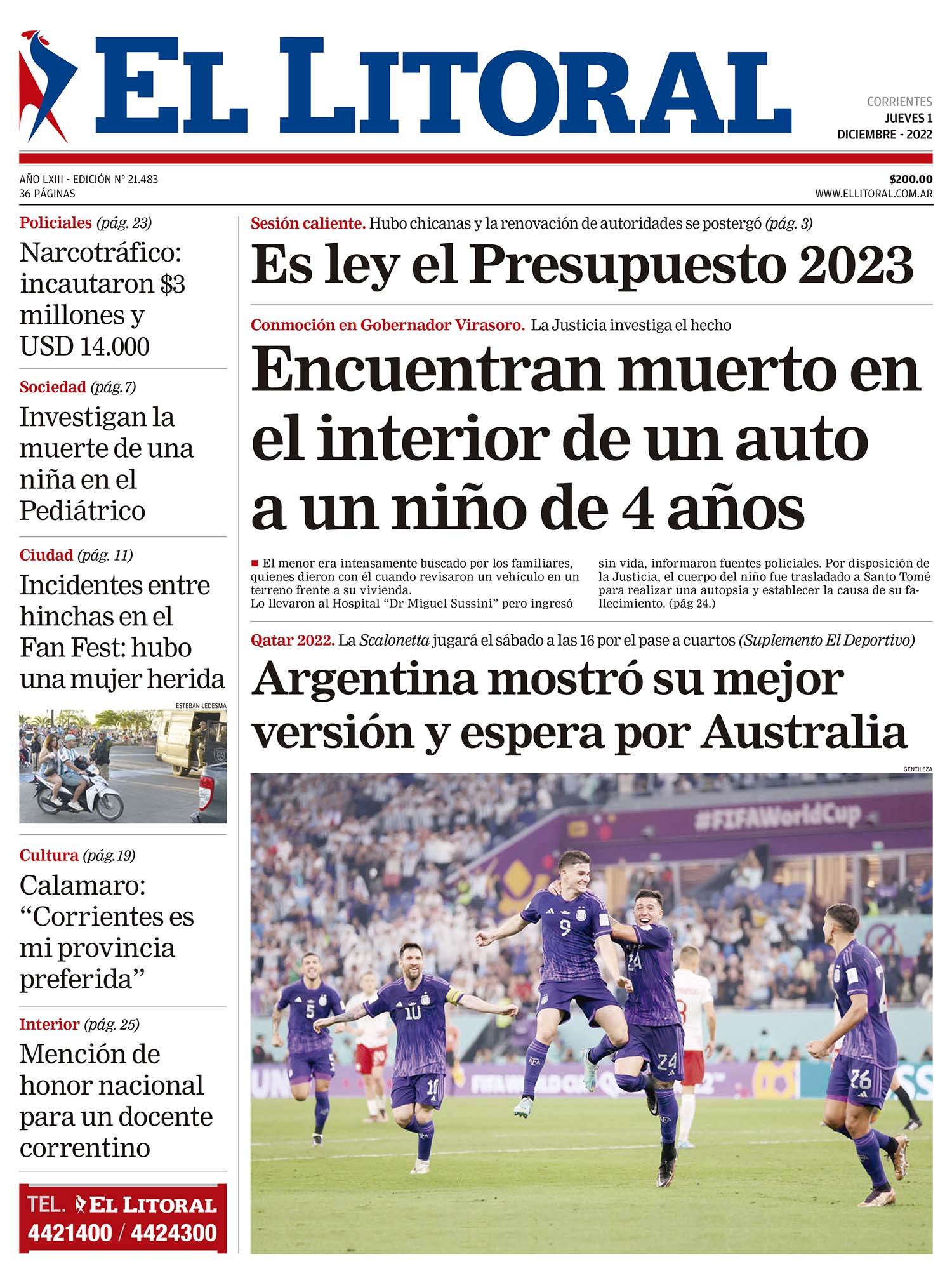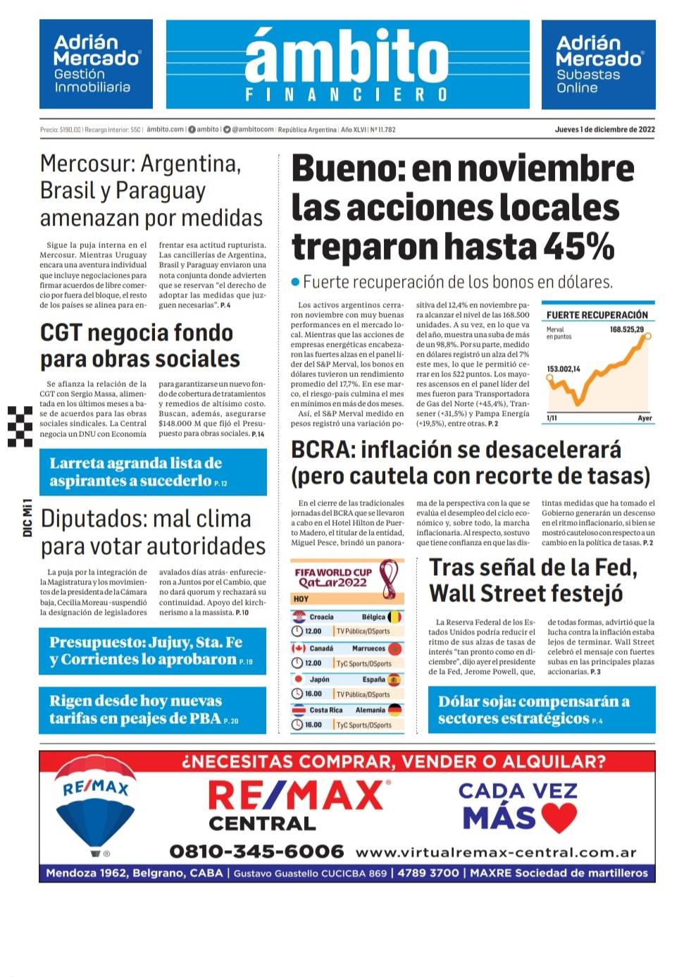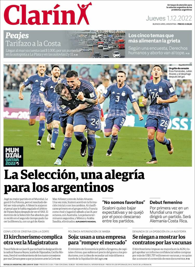 Portadas de diarios nacionales | Jueves 1° de diciembre
