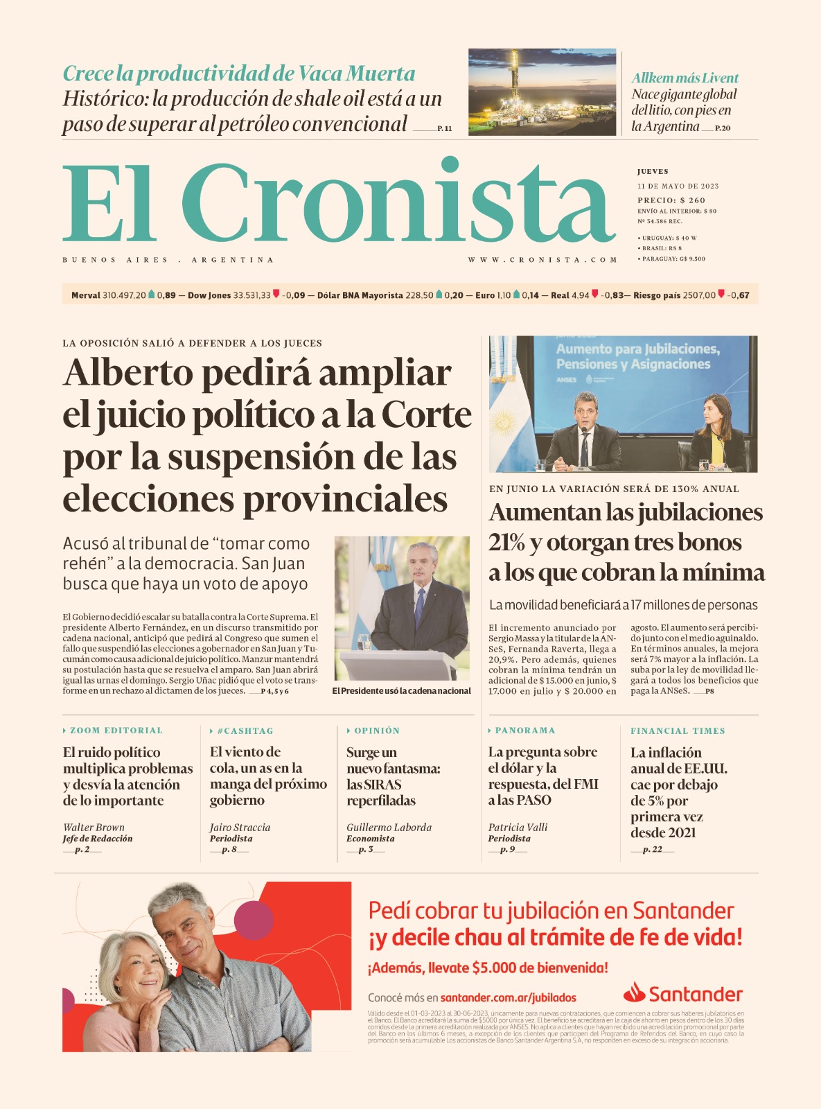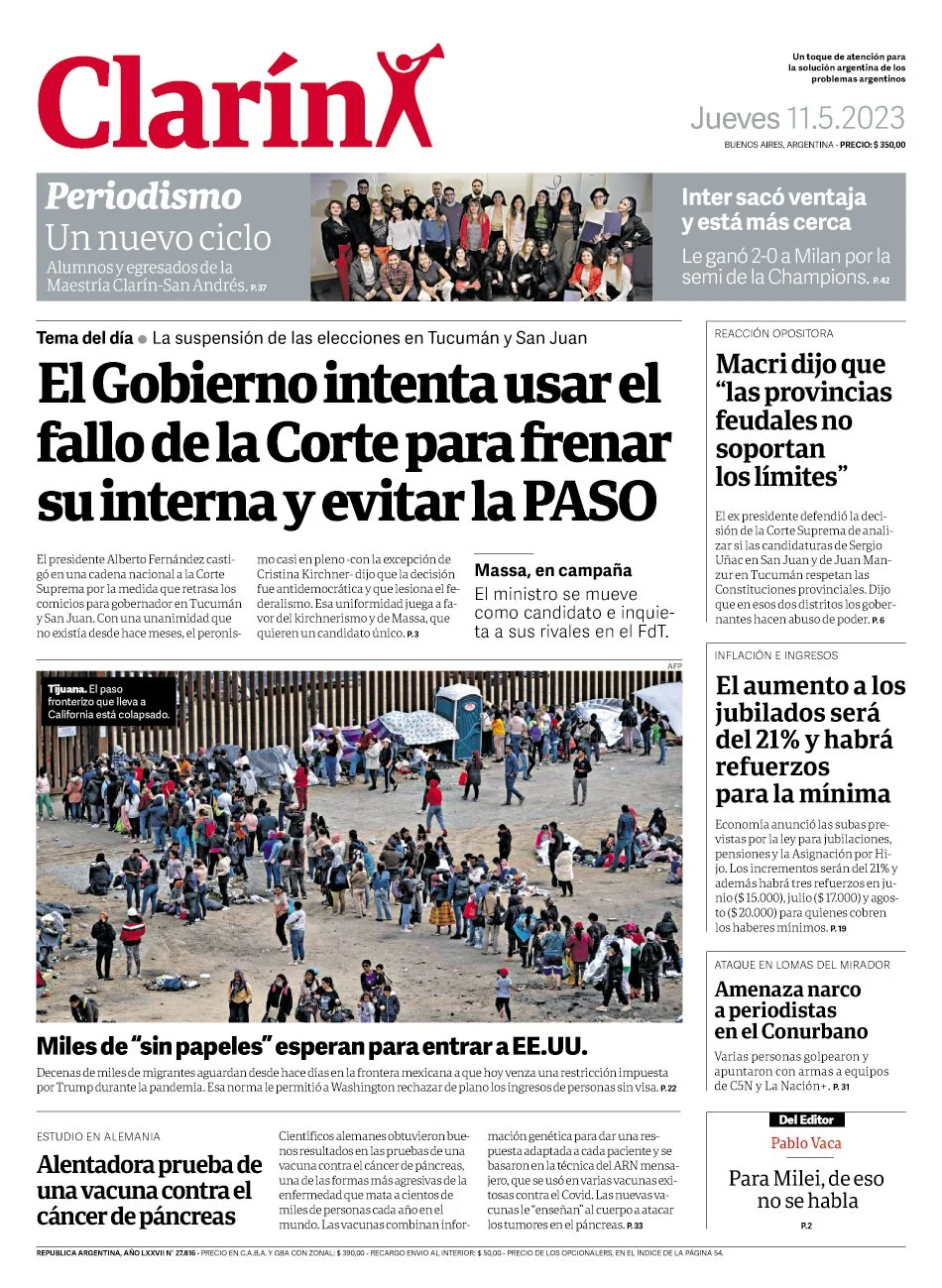 Portadas de diarios nacionales | Jueves 11 de mayo