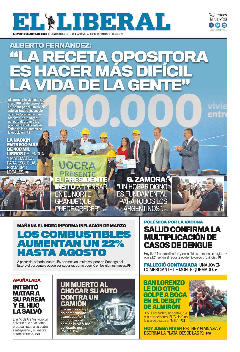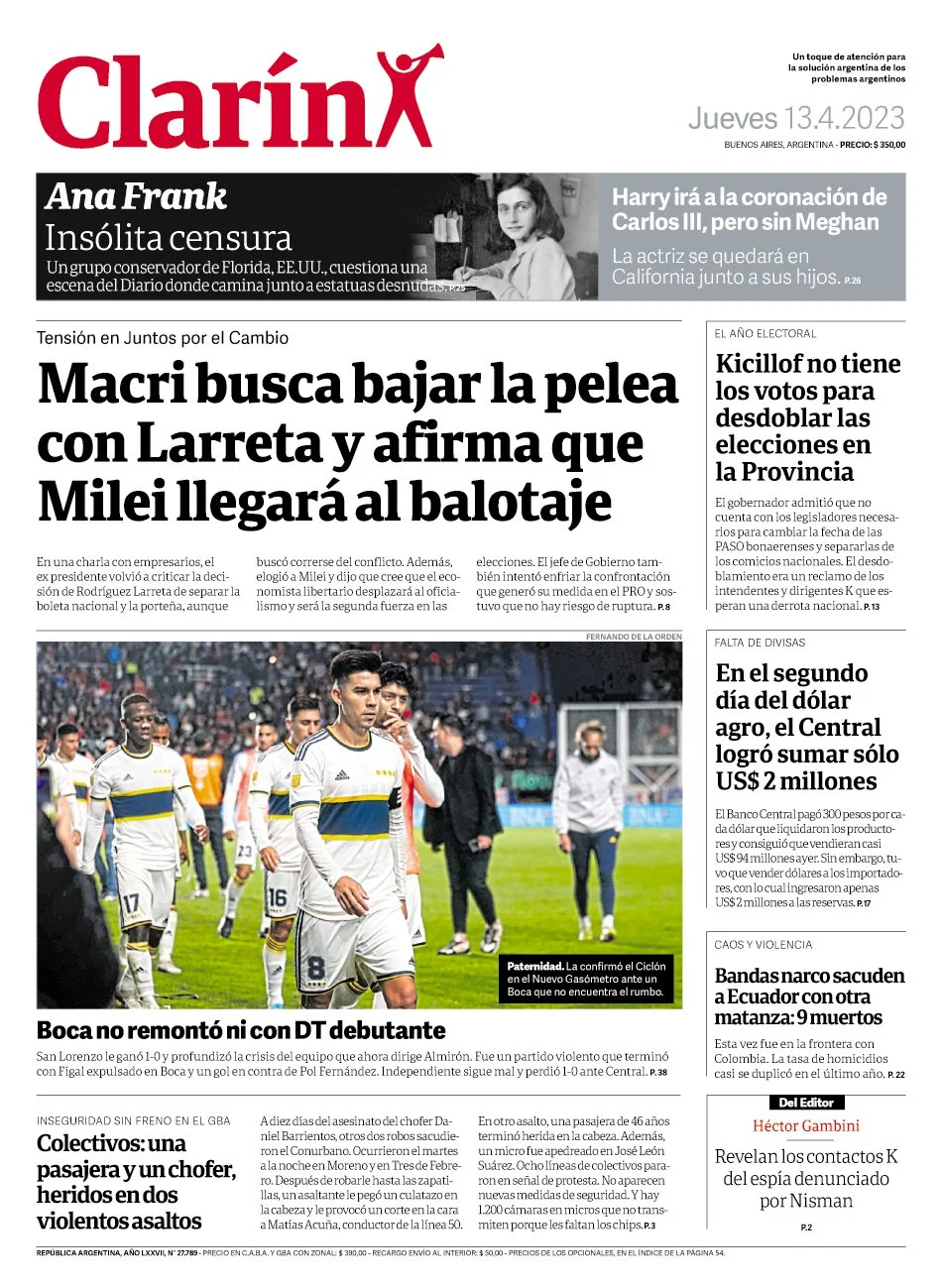 Portadas de diarios nacionales | Jueves 13 de abril