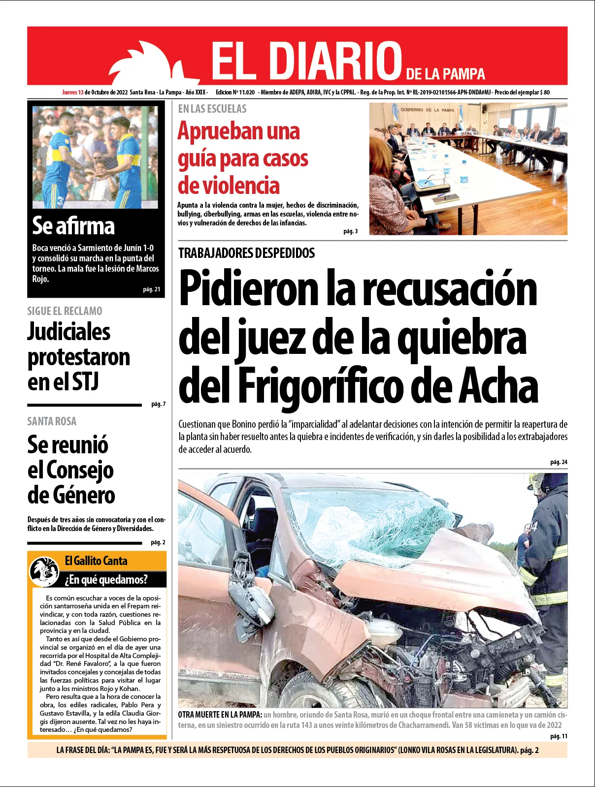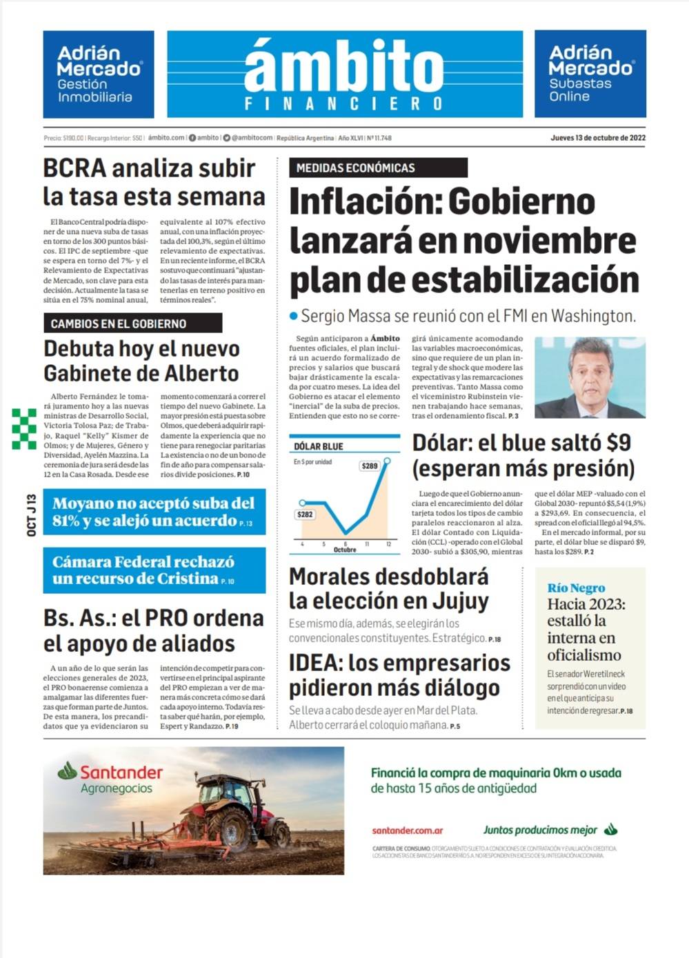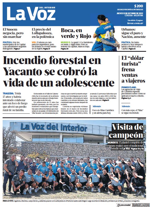 Portadas de diarios nacionales | Jueves 13 de octubre