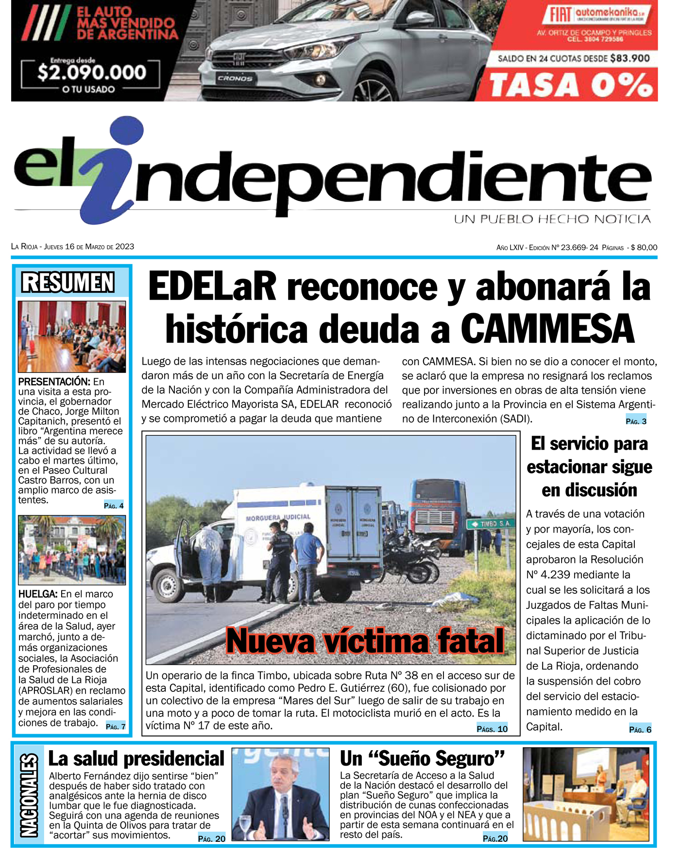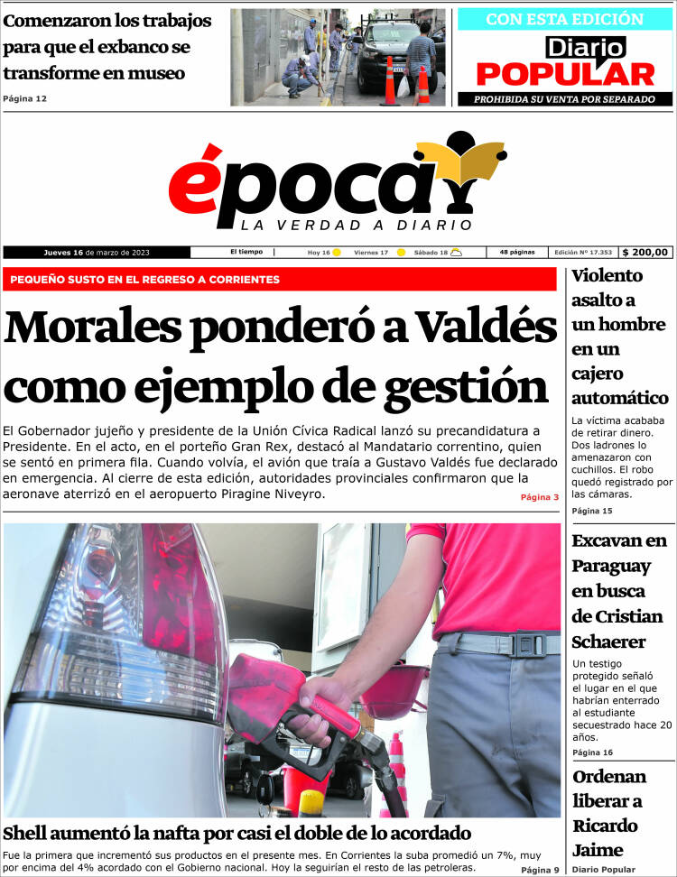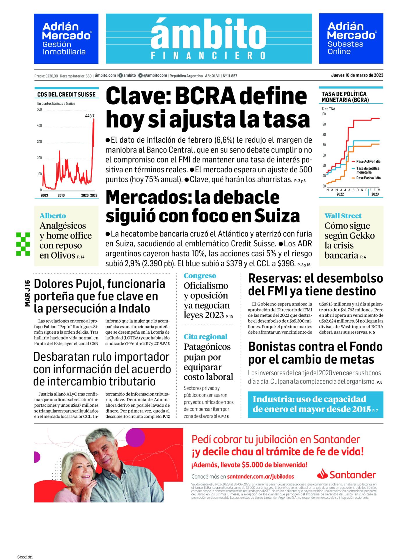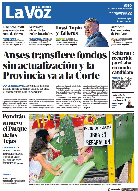 Portadas de diarios nacionales | Jueves 16 de marzo