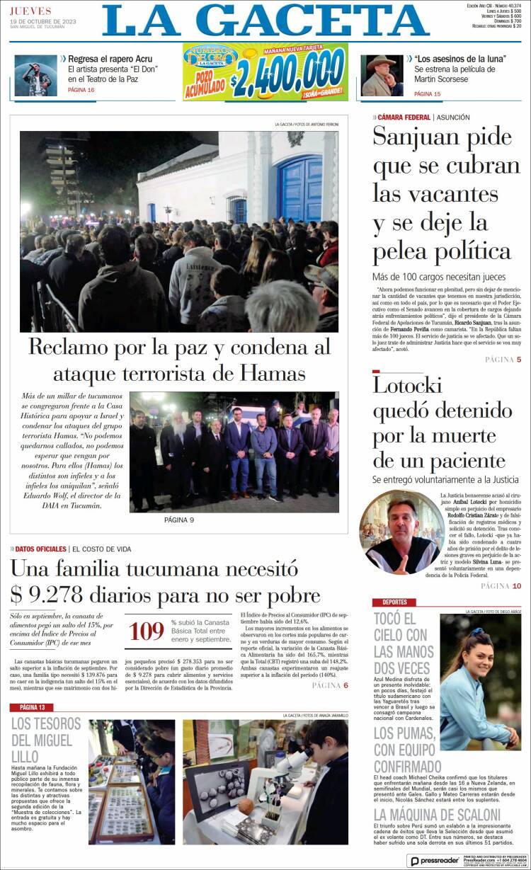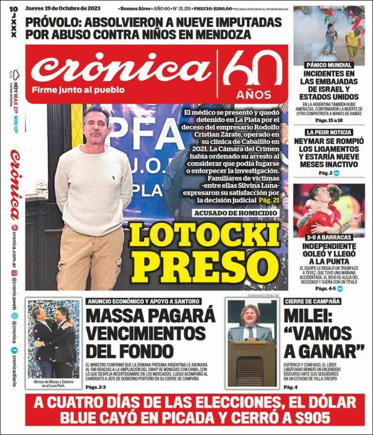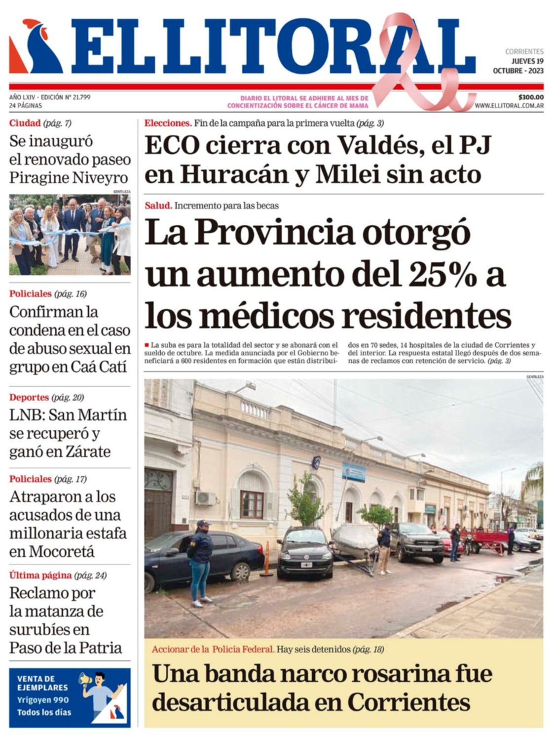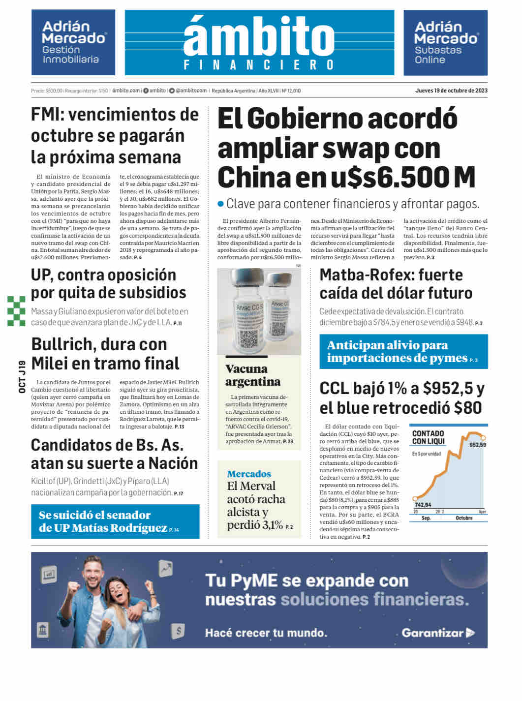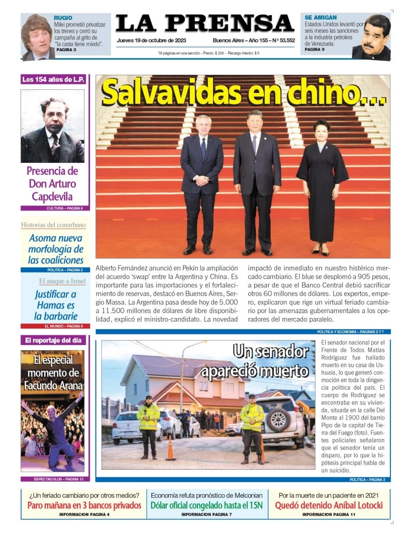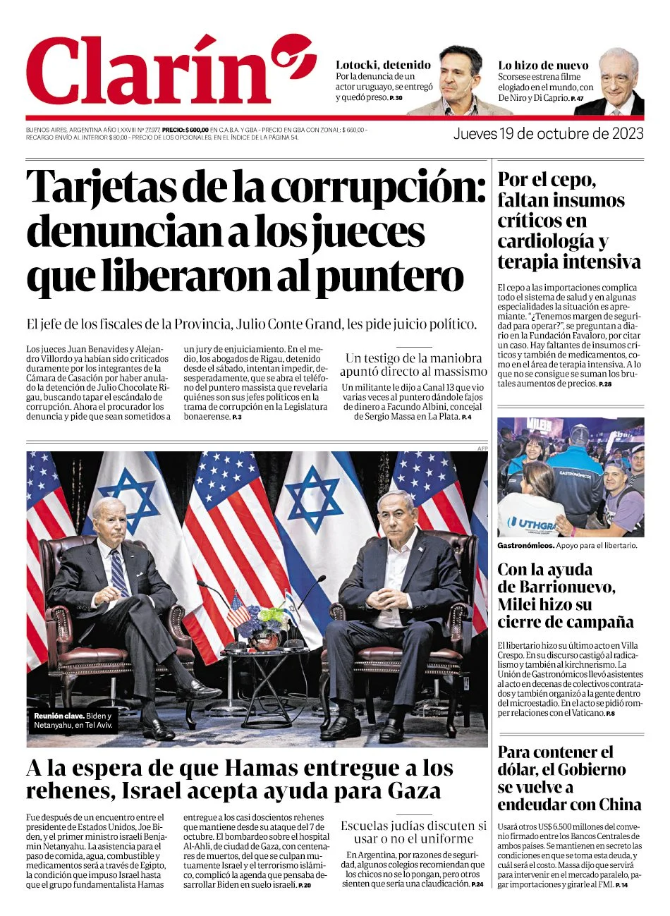 Portadas de diarios nacionales | Jueves 19 de octubre