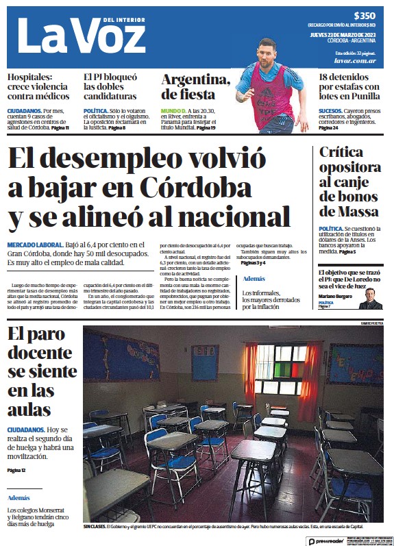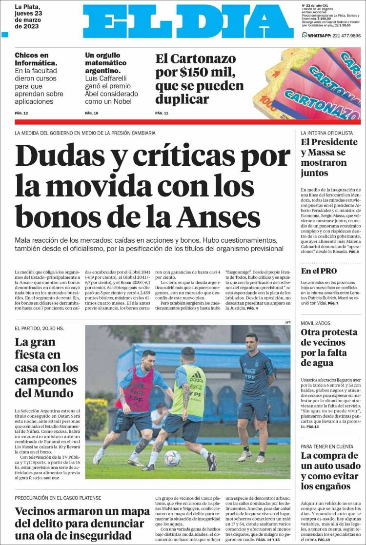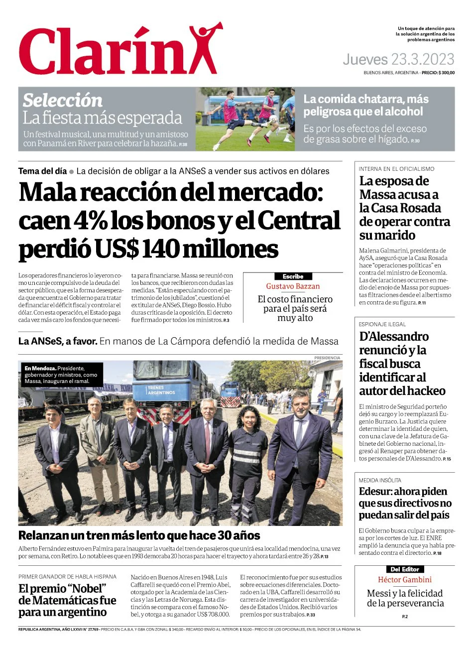 Portadas de diarios nacionales | Jueves 23 de marzo