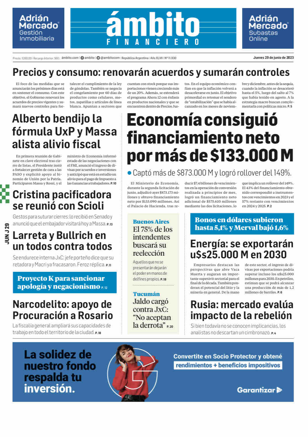 Portadas de diarios nacionales | Jueves 29 de junio