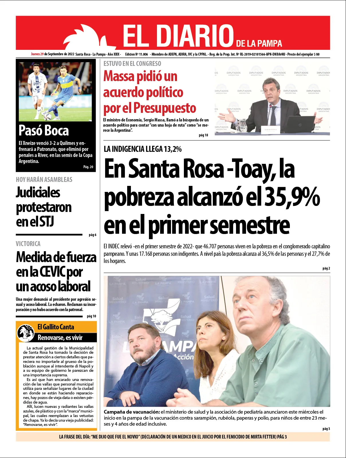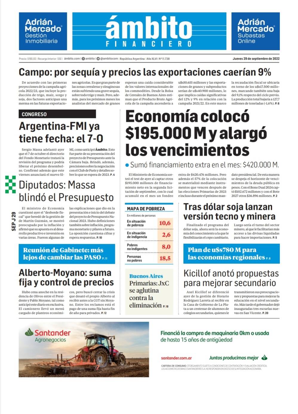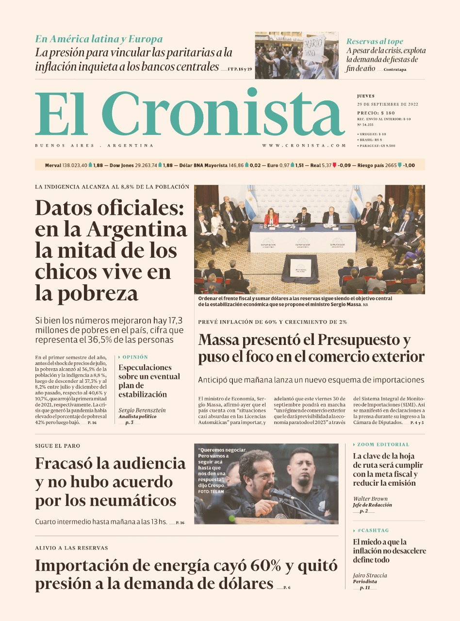 Portadas de diarios nacionales | Jueves 29 de septiembre