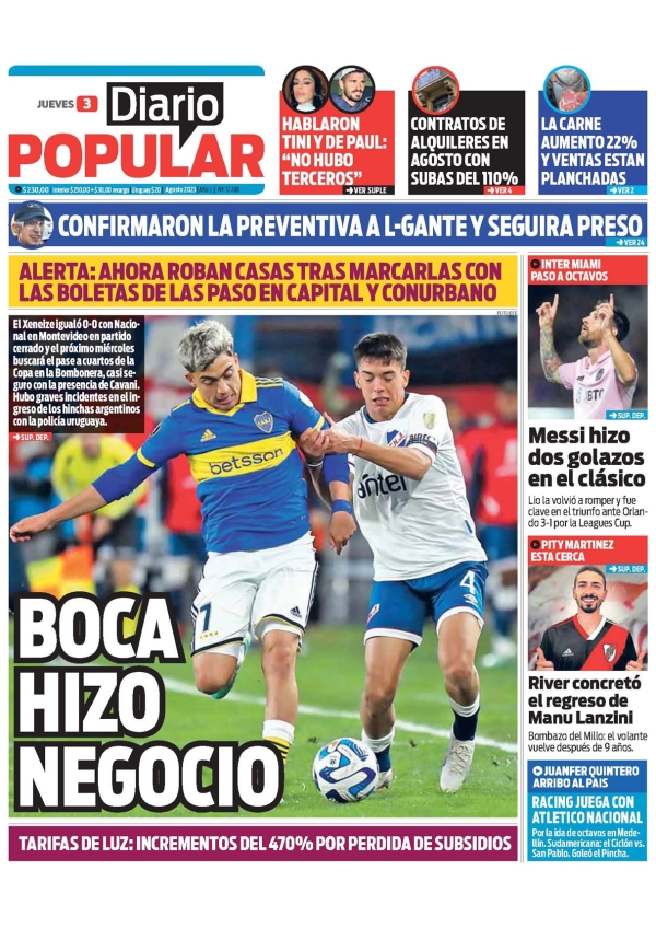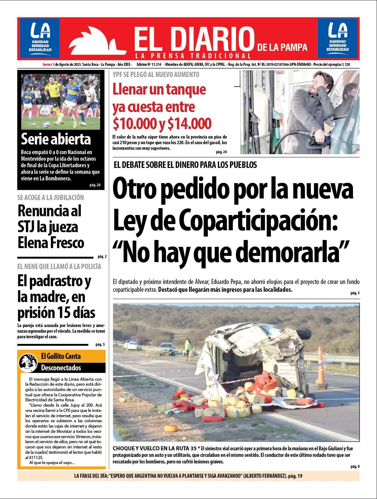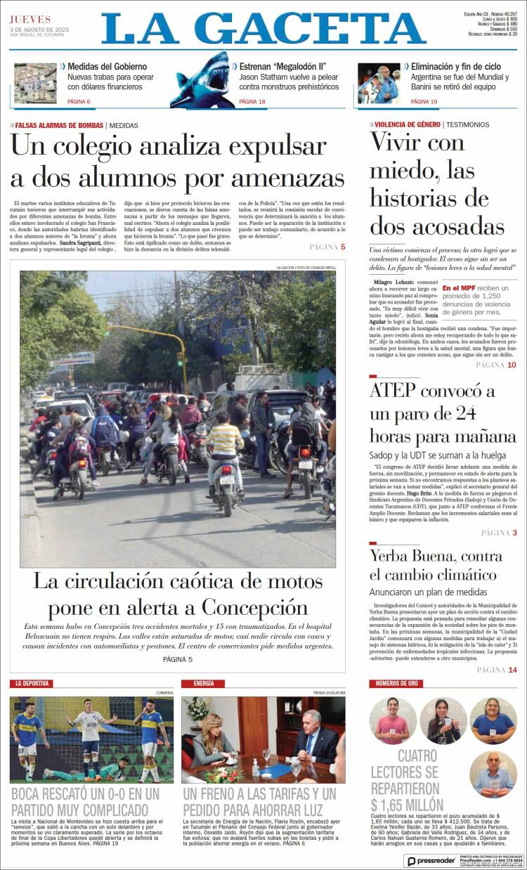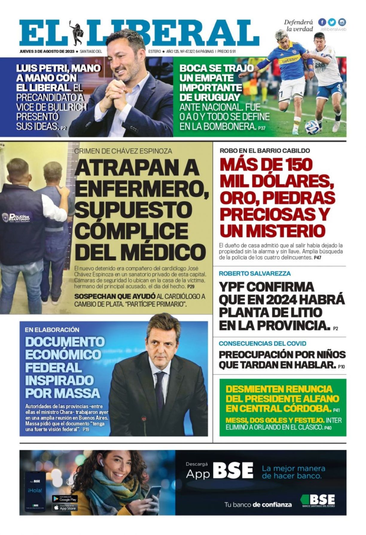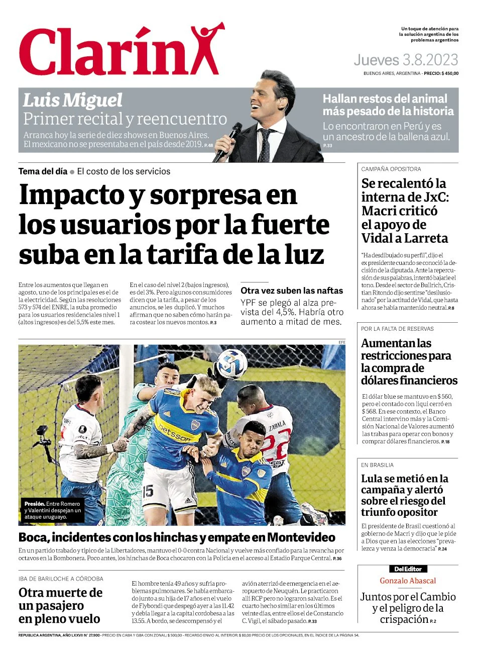Portadas de diarios nacionales | Jueves 3 de agosto