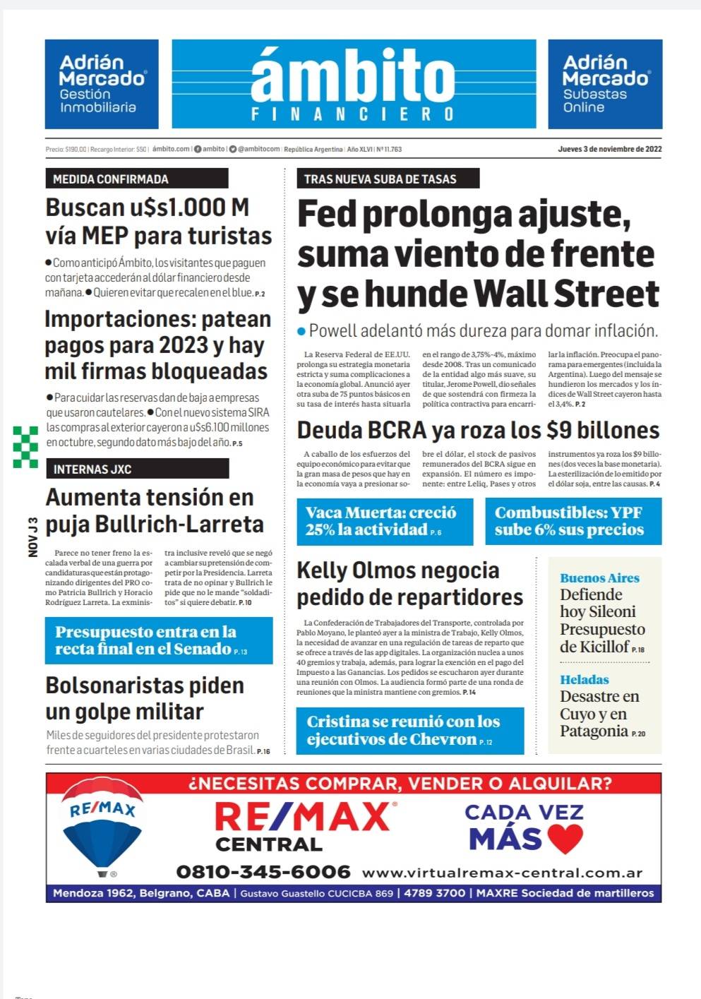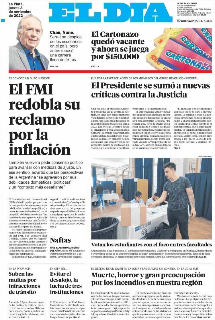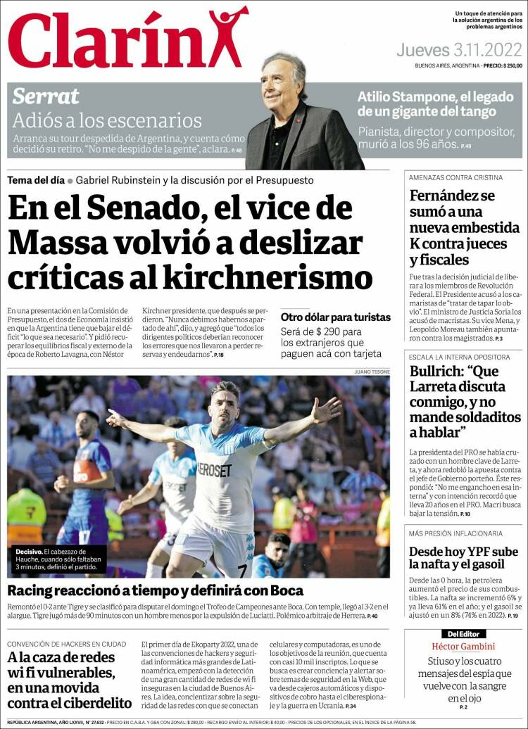 Portadas de diarios nacionales | Jueves 3 de noviembre