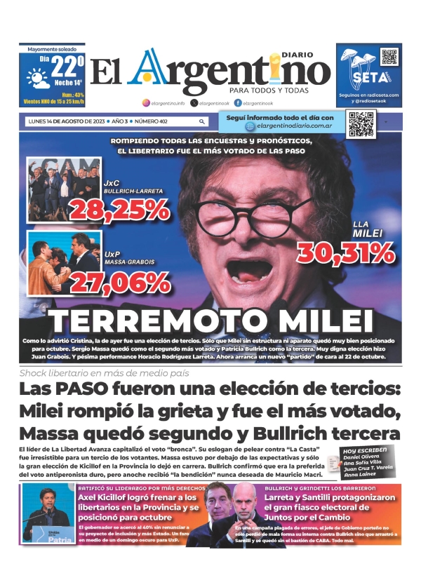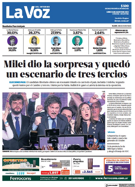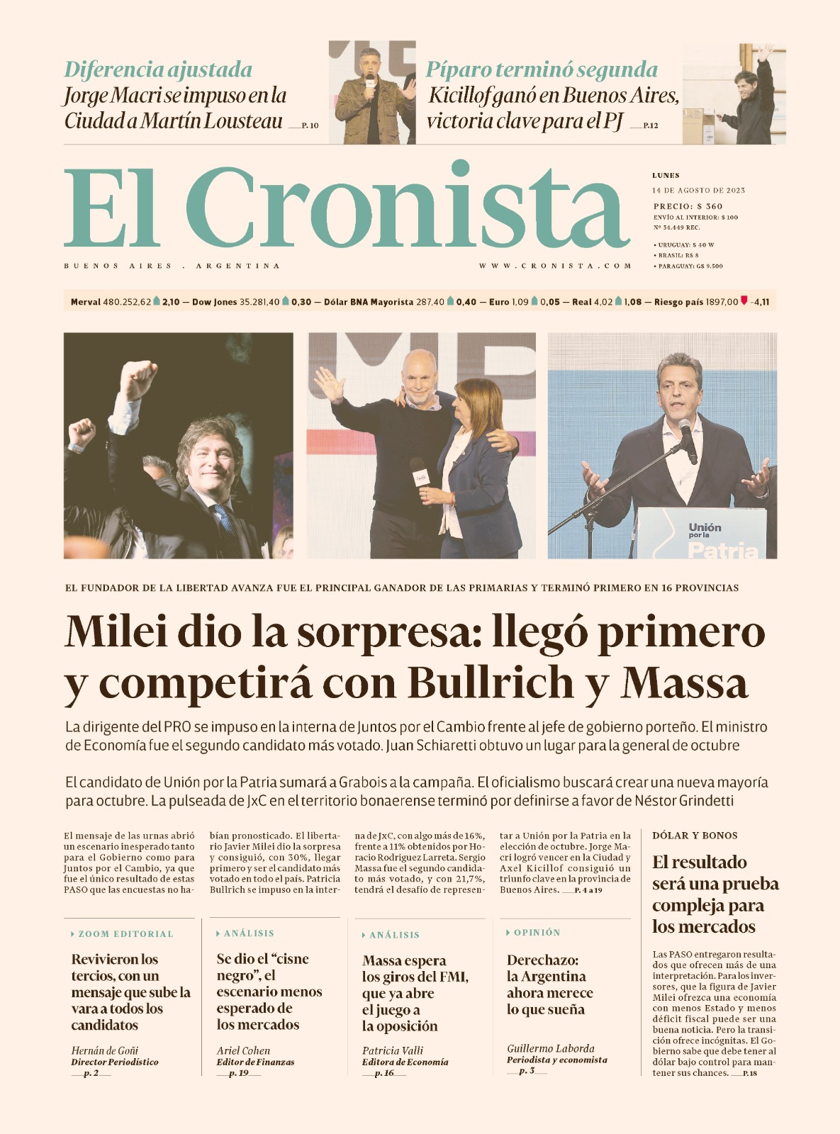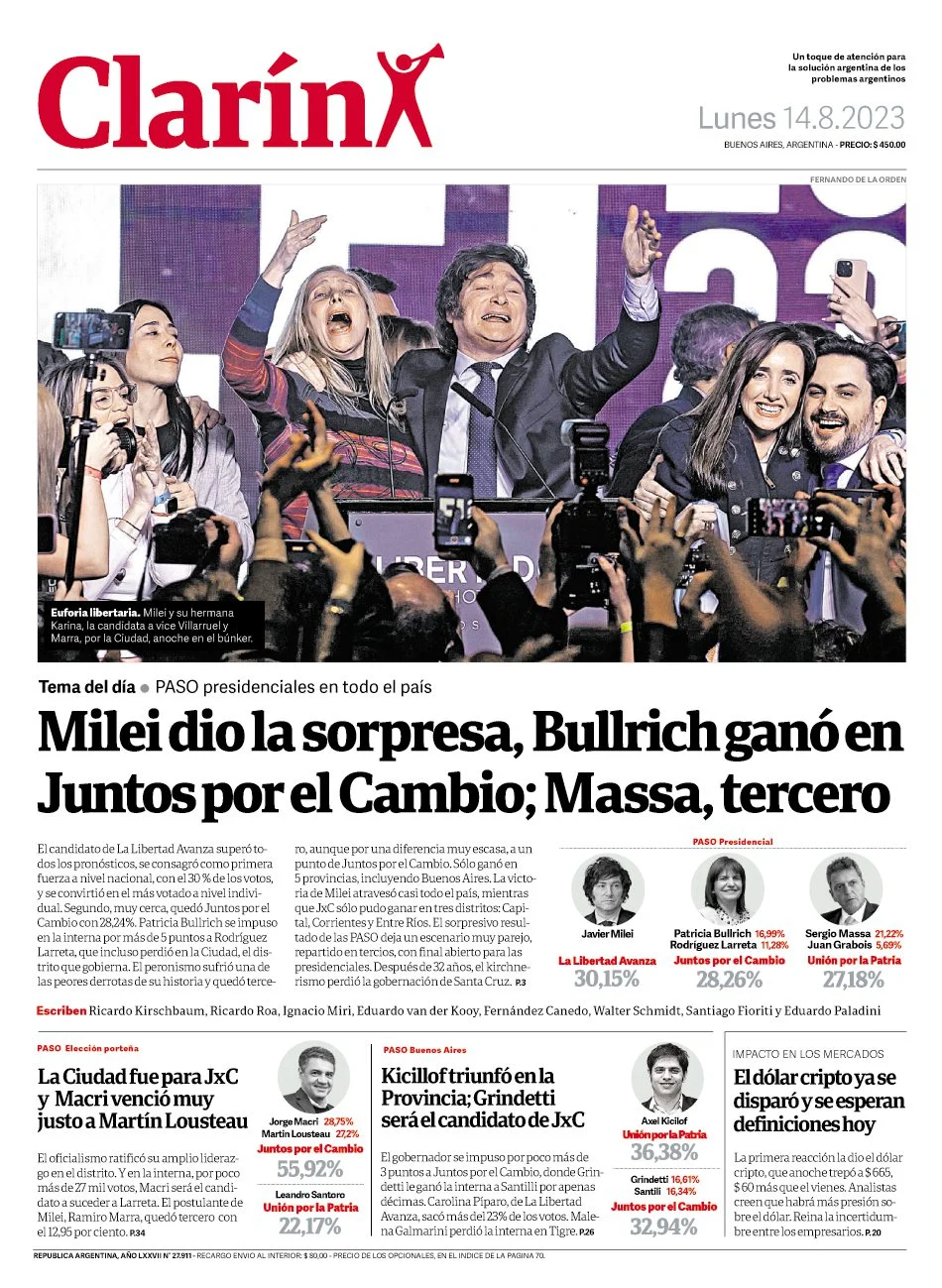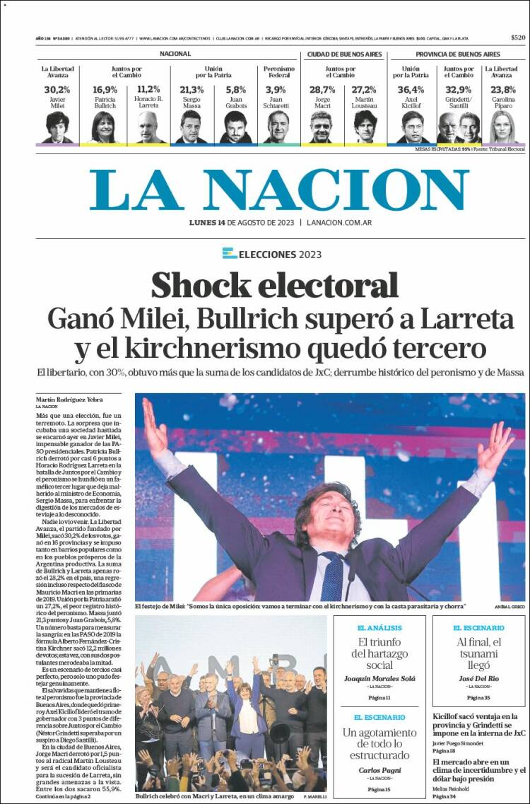 Portadas de diarios nacionales | Lunes 14 de agosto