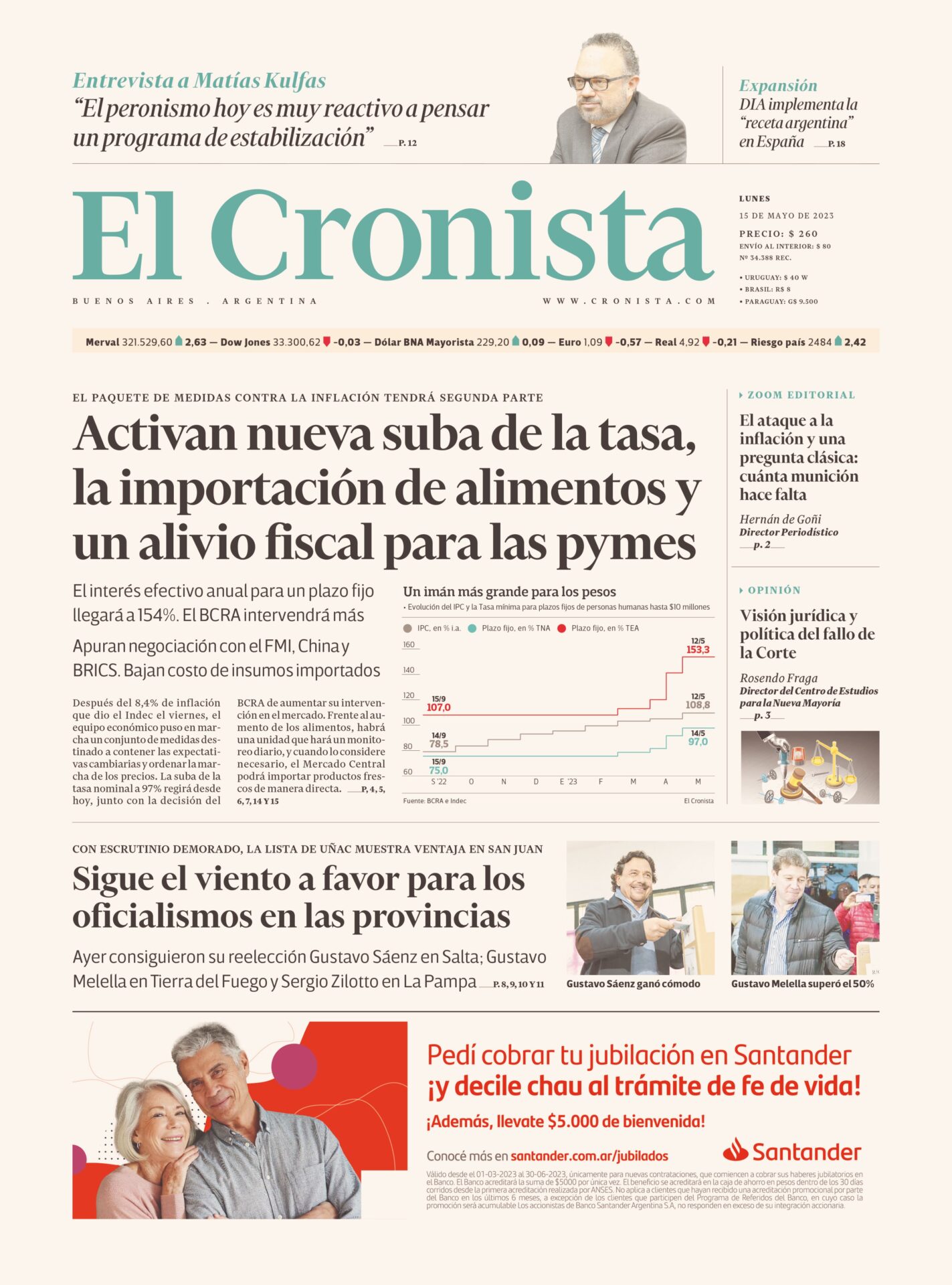 Portadas de diarios nacionales | Lunes 15 de mayo