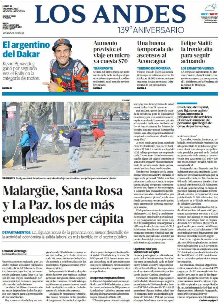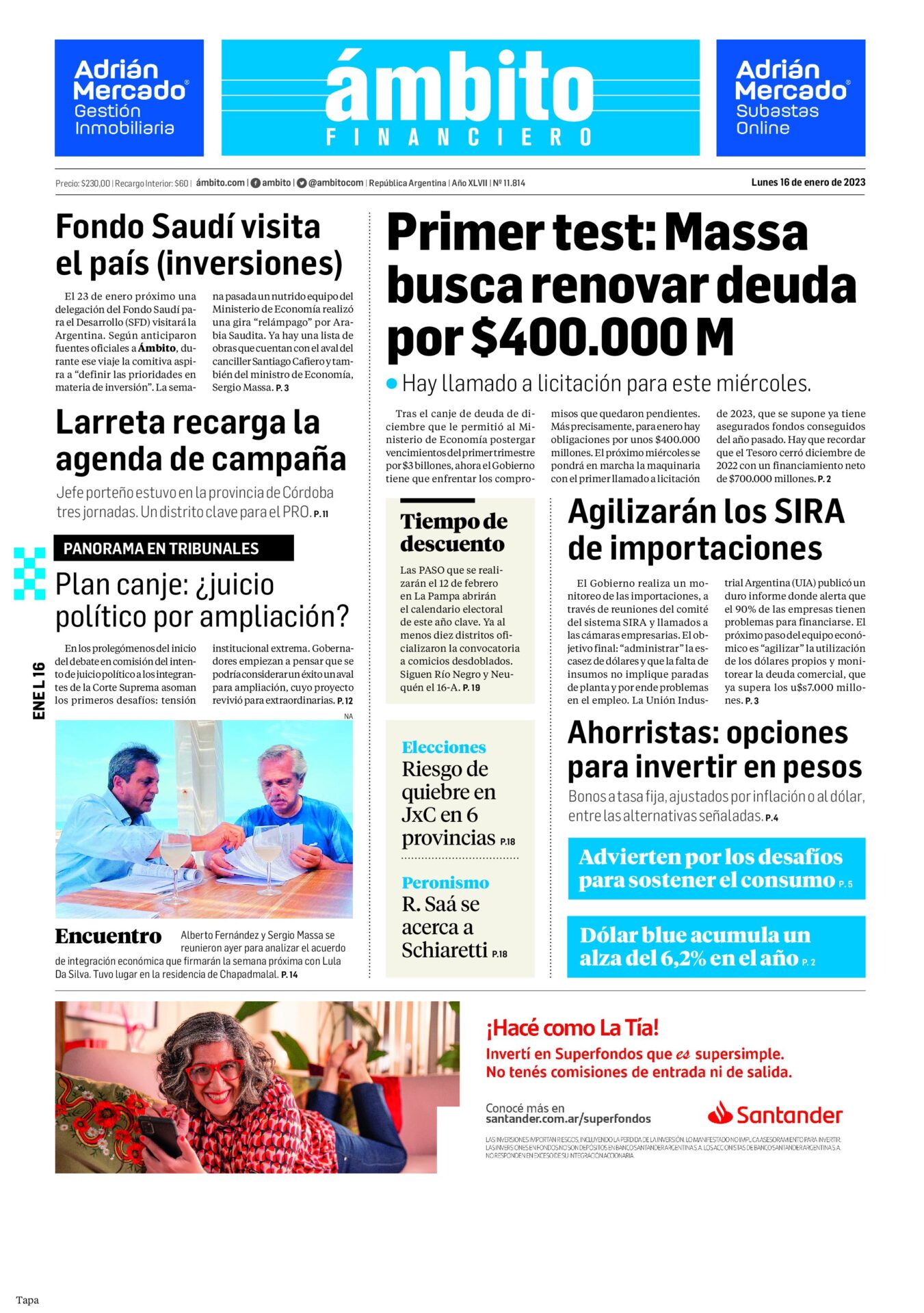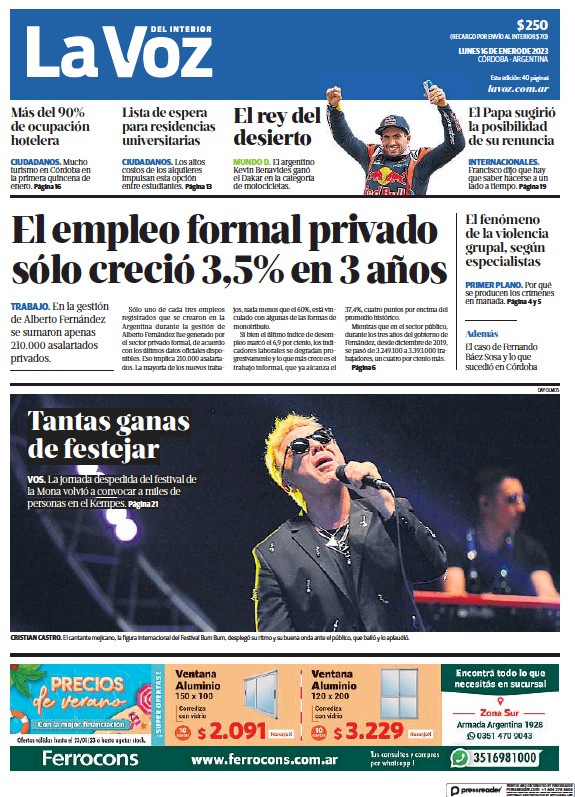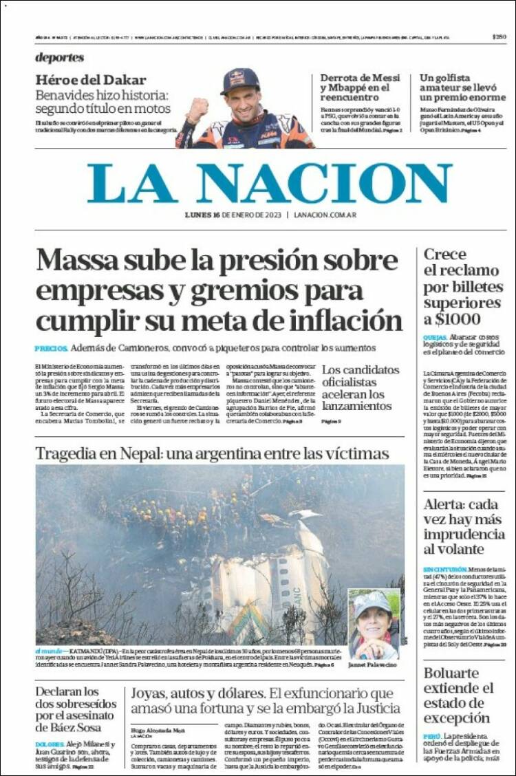 Portadas de diarios nacionales | Lunes 16 de enero