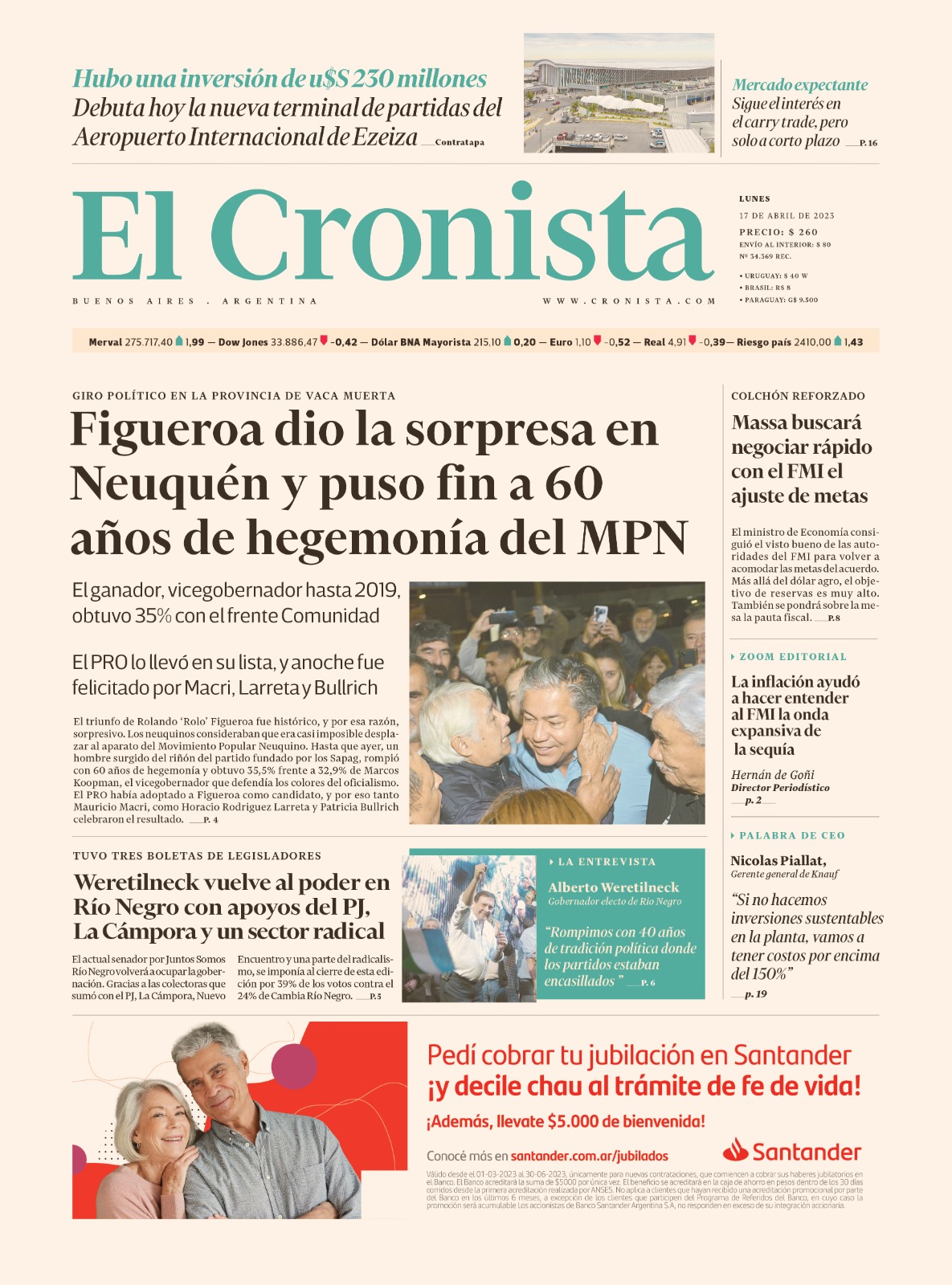 Portadas de diarios nacionales | Lunes 17 de abril