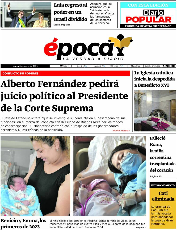 Portadas de diarios nacionales | Lunes 2 de enero