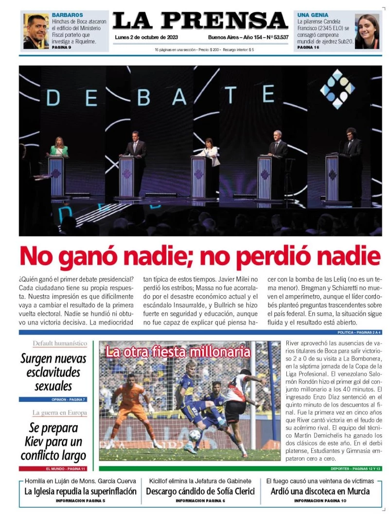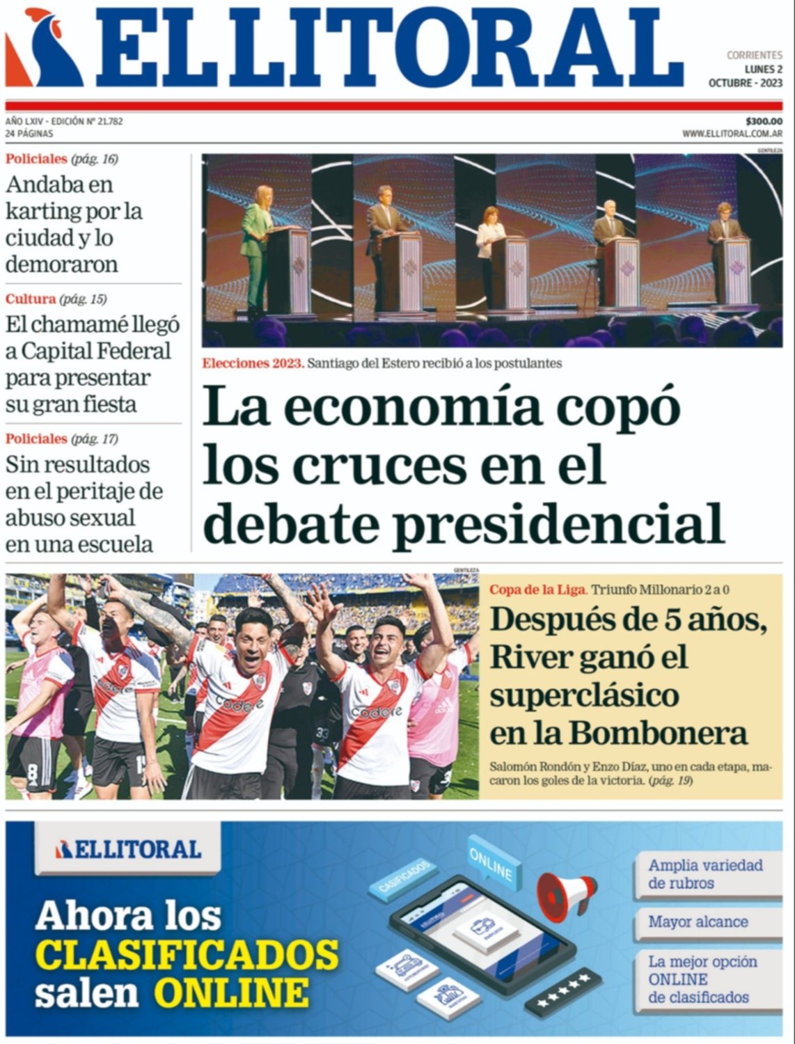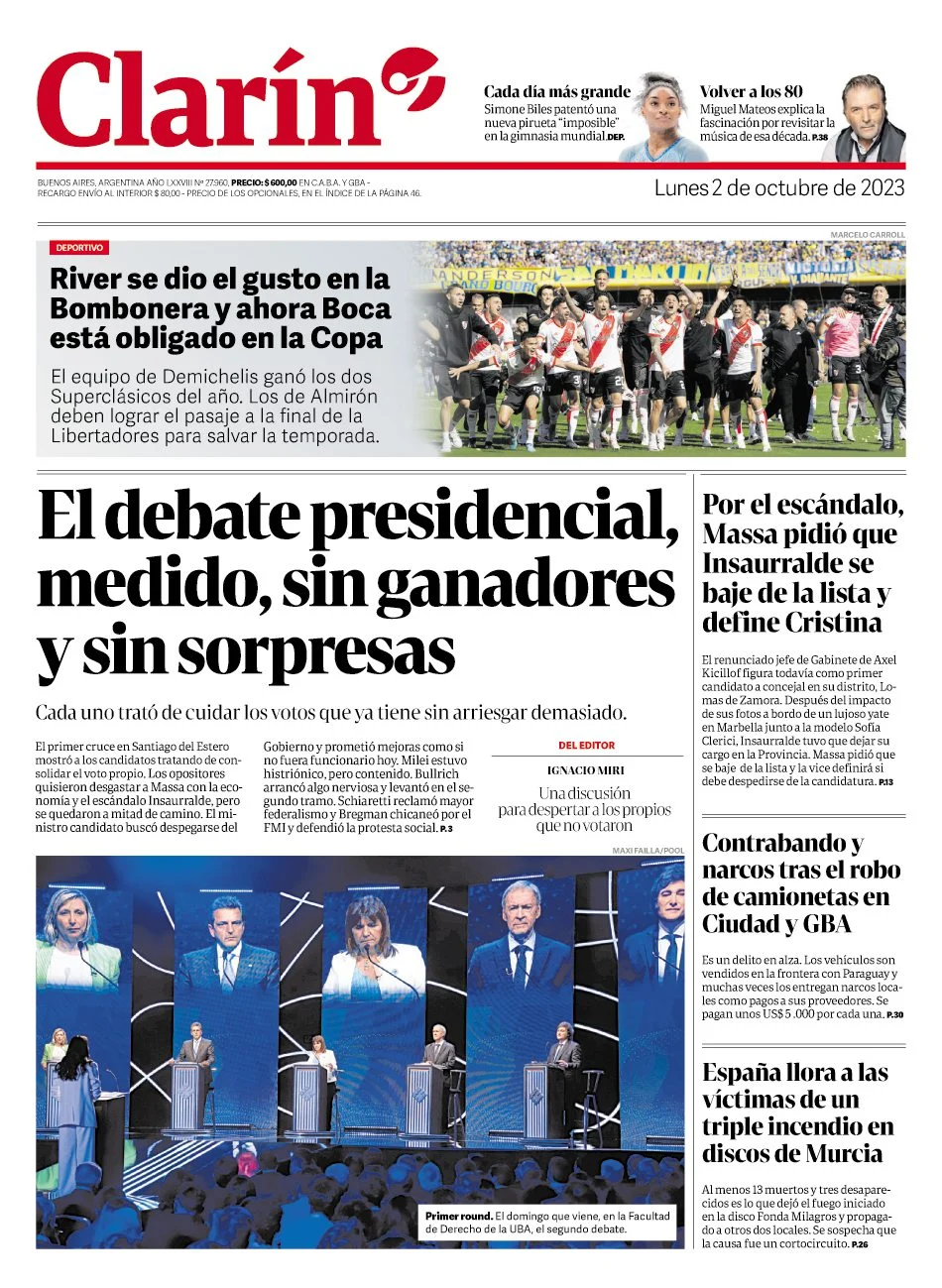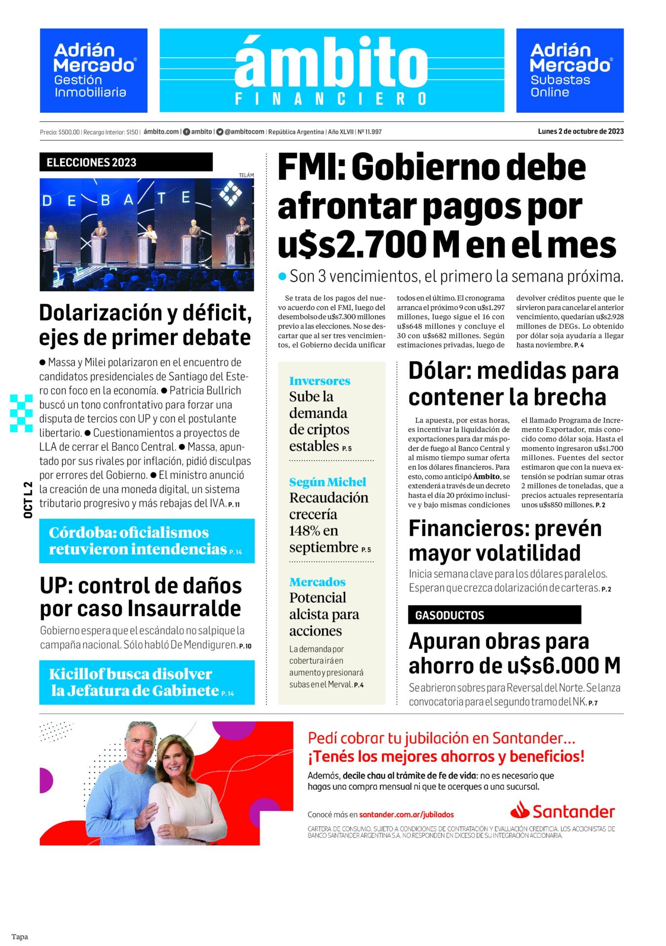 Portadas de diarios nacionales | Lunes 2 de octubre