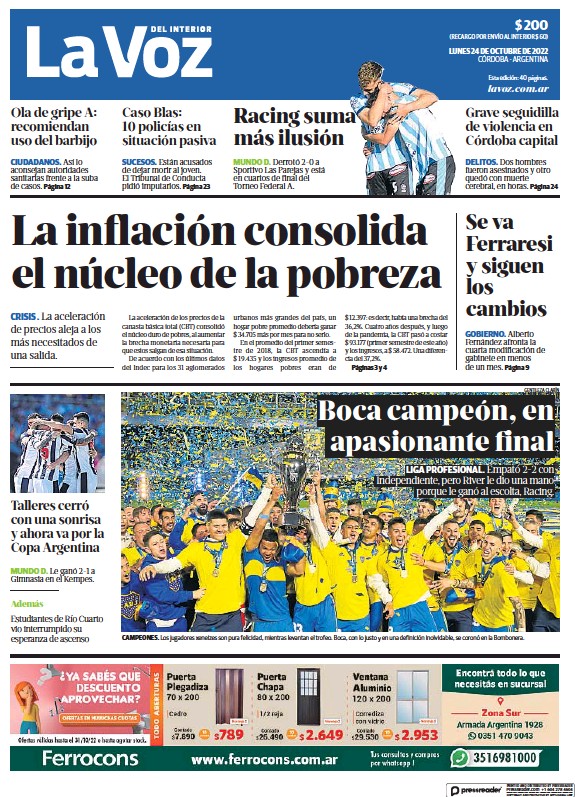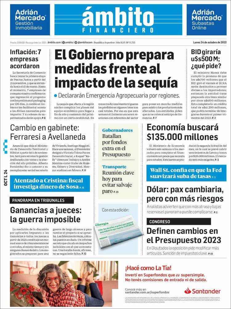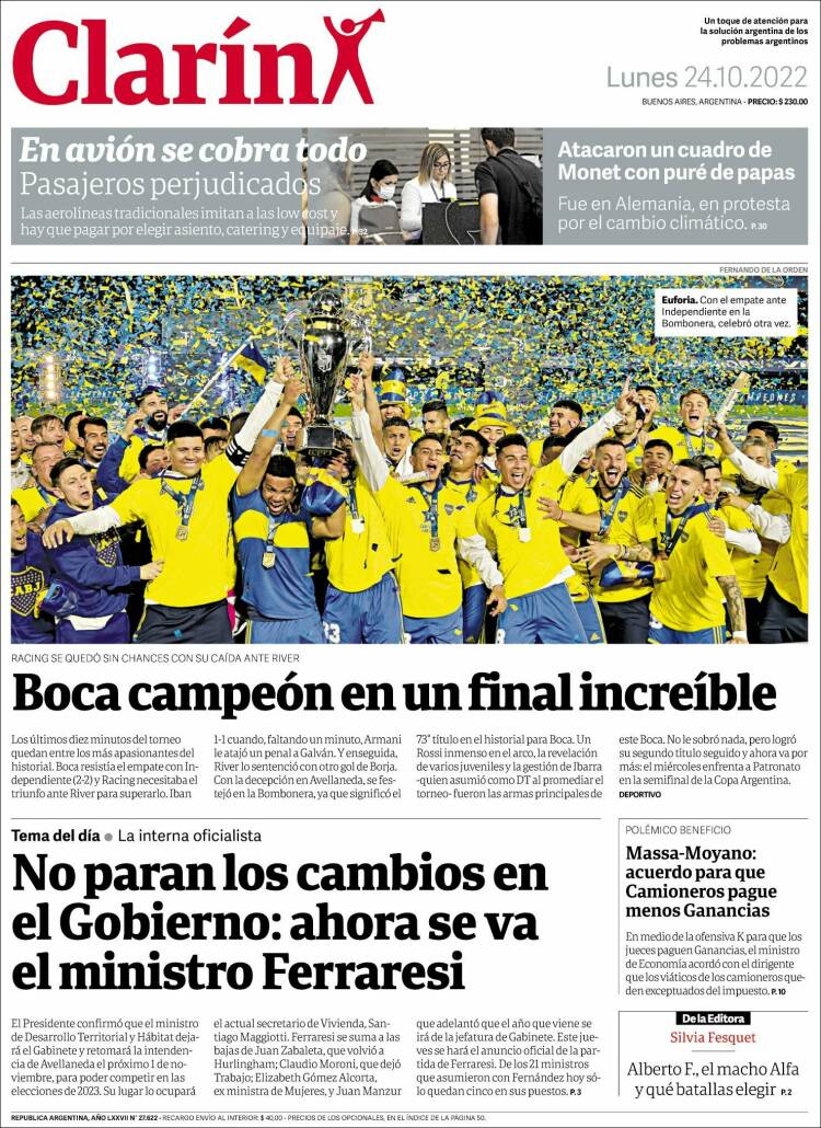 Portadas de diarios nacionales | Lunes 24 de octubre