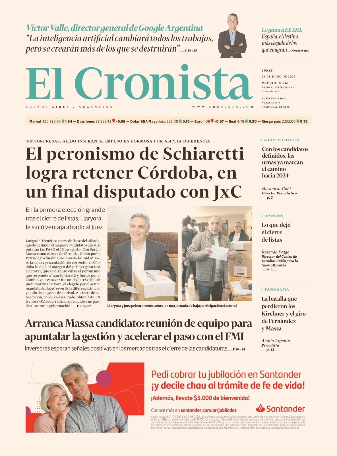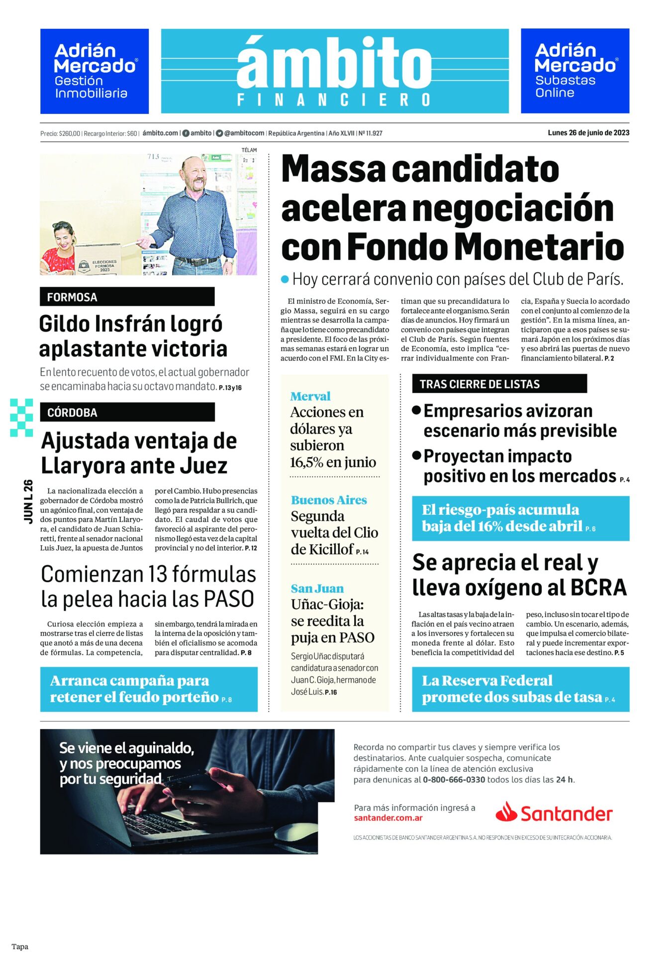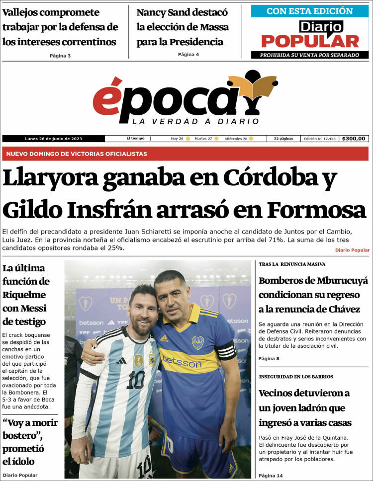 Portadas de diarios nacionales | Lunes 26 de junio