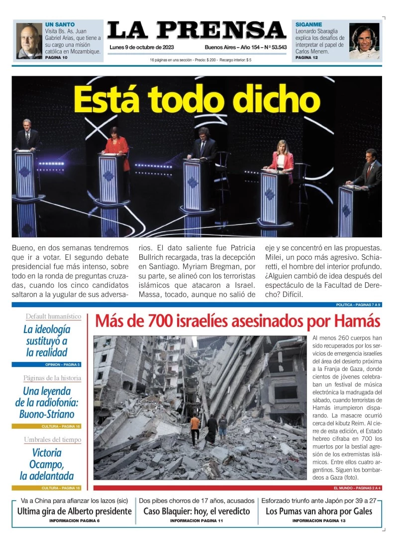 Portadas de diarios nacionales | Lunes 9 de octubre