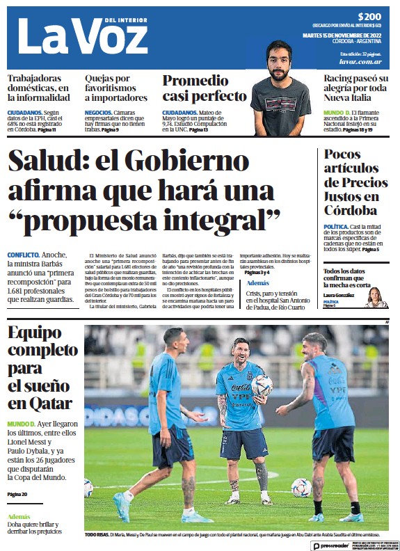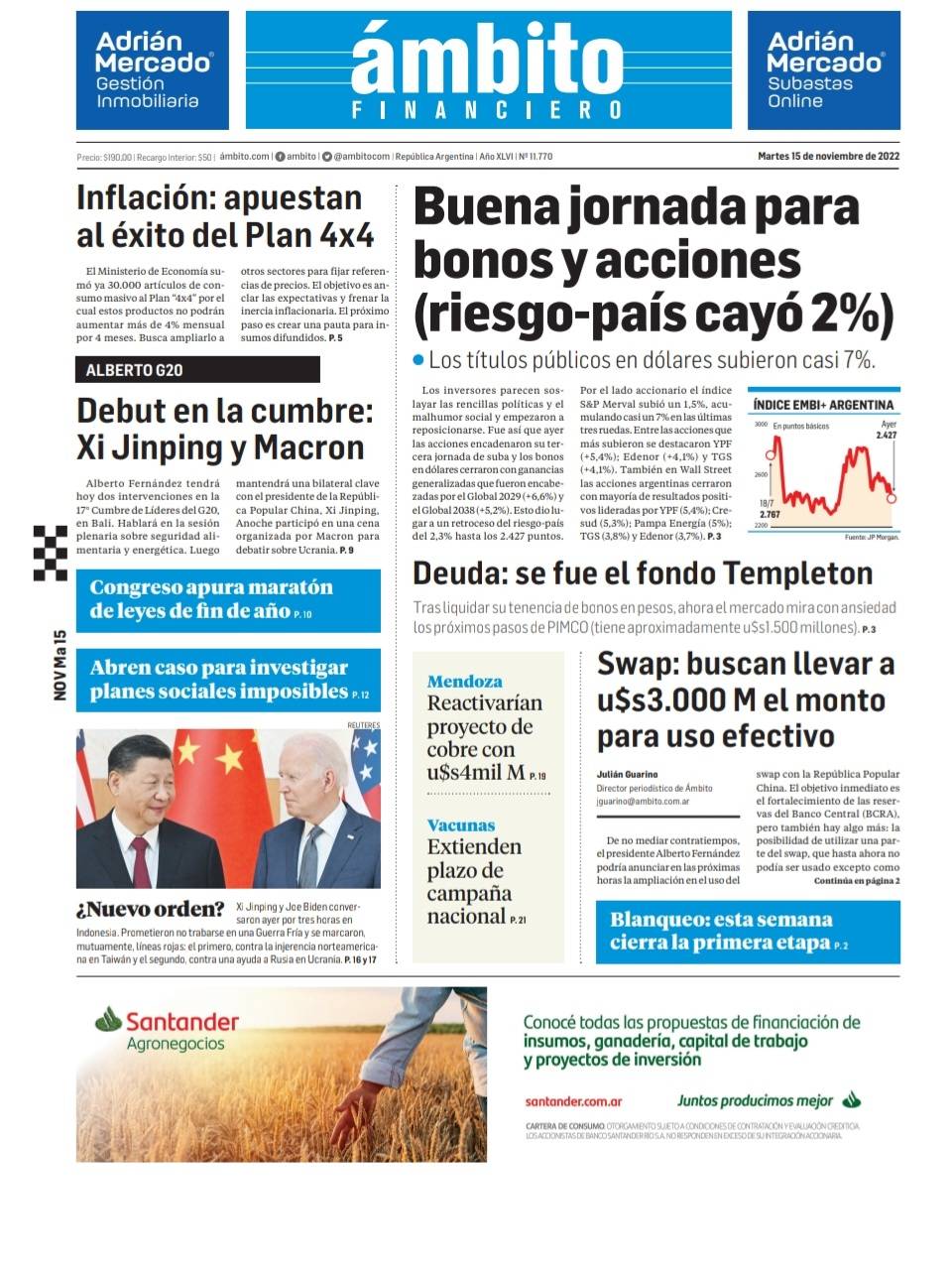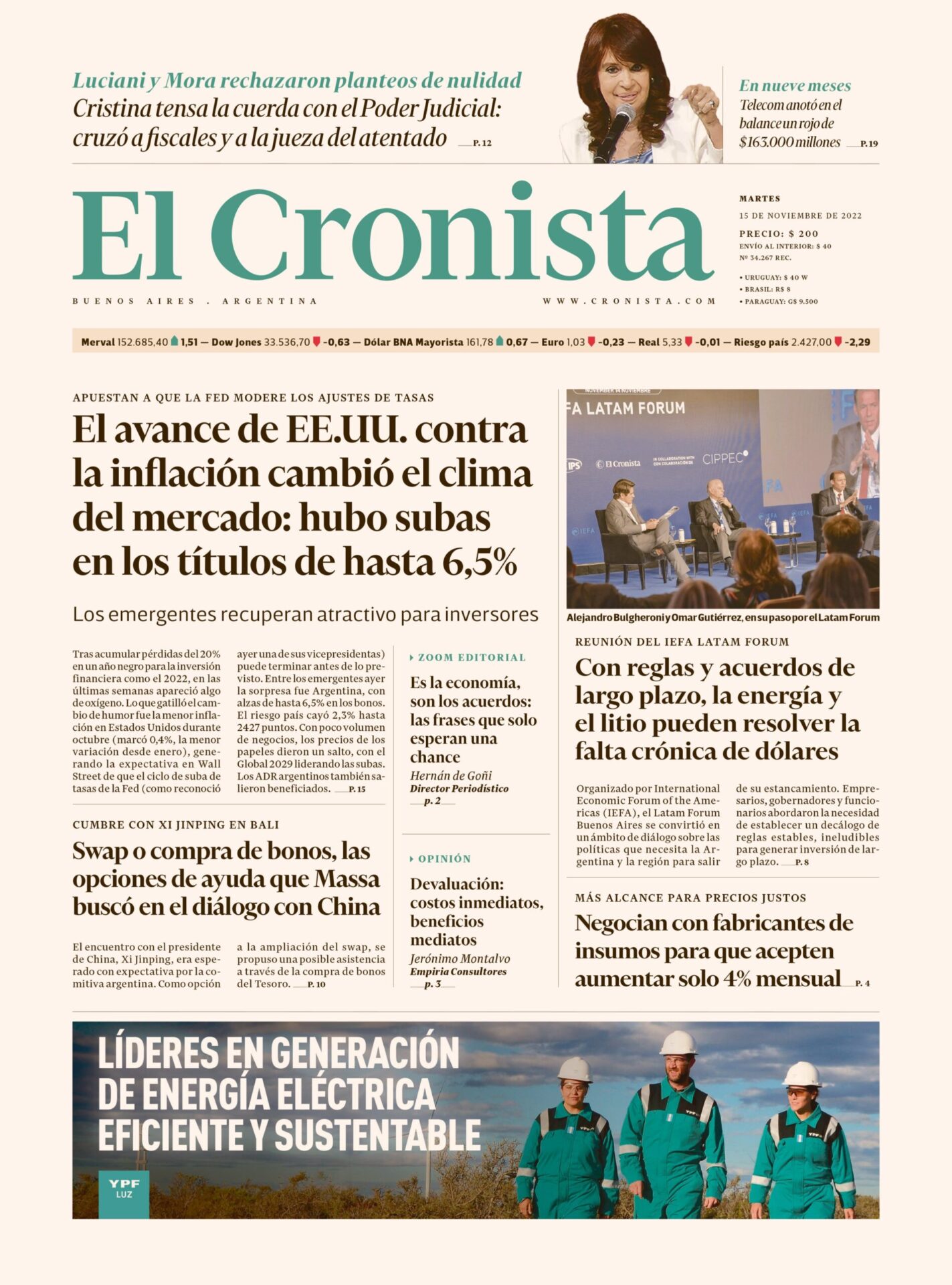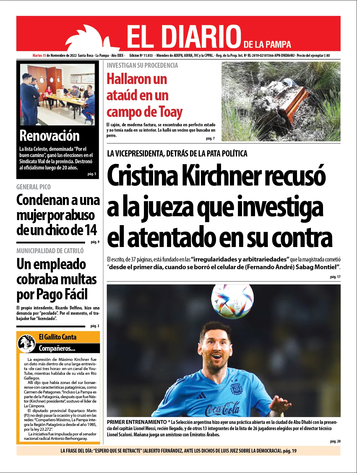 Portadas de diarios nacionales | Martes 15 de noviembre