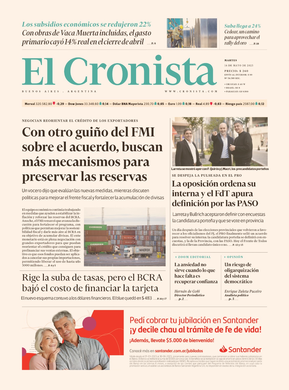 Portadas de diarios nacionales | Martes 16 de mayo