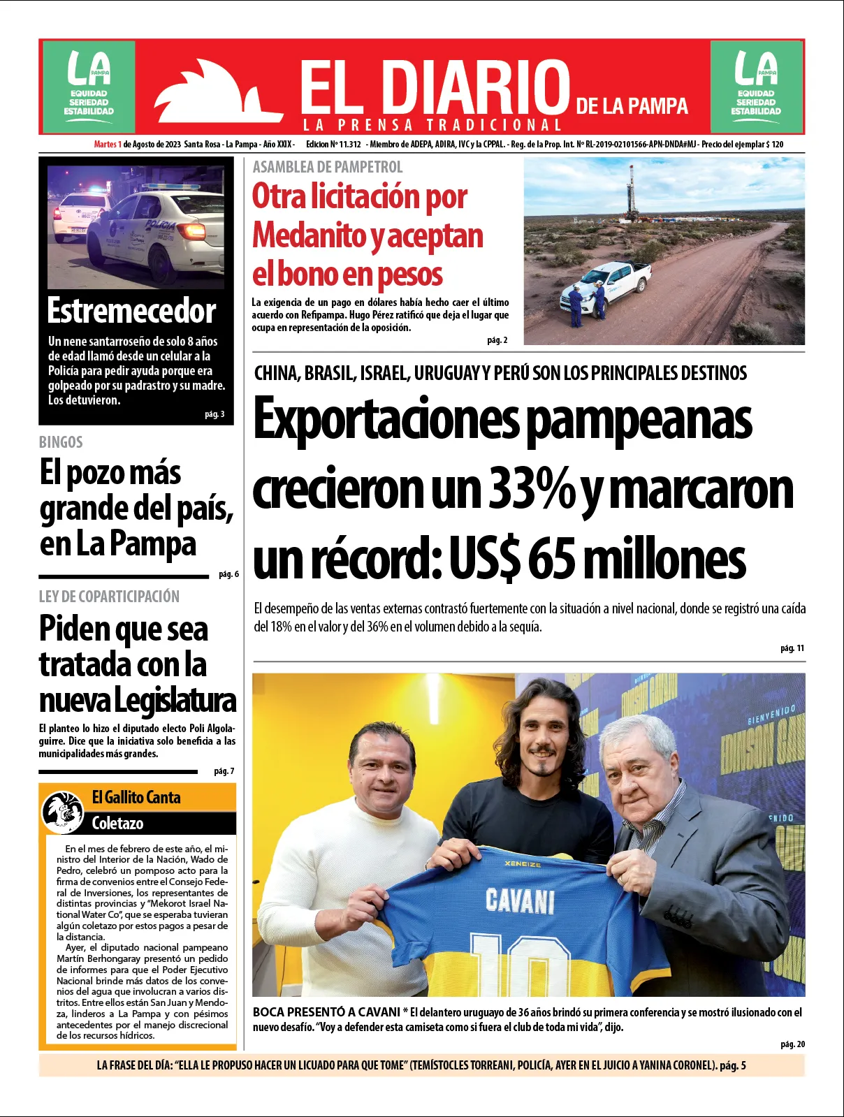 Portadas de diarios nacionales | Martes 1º de agosto