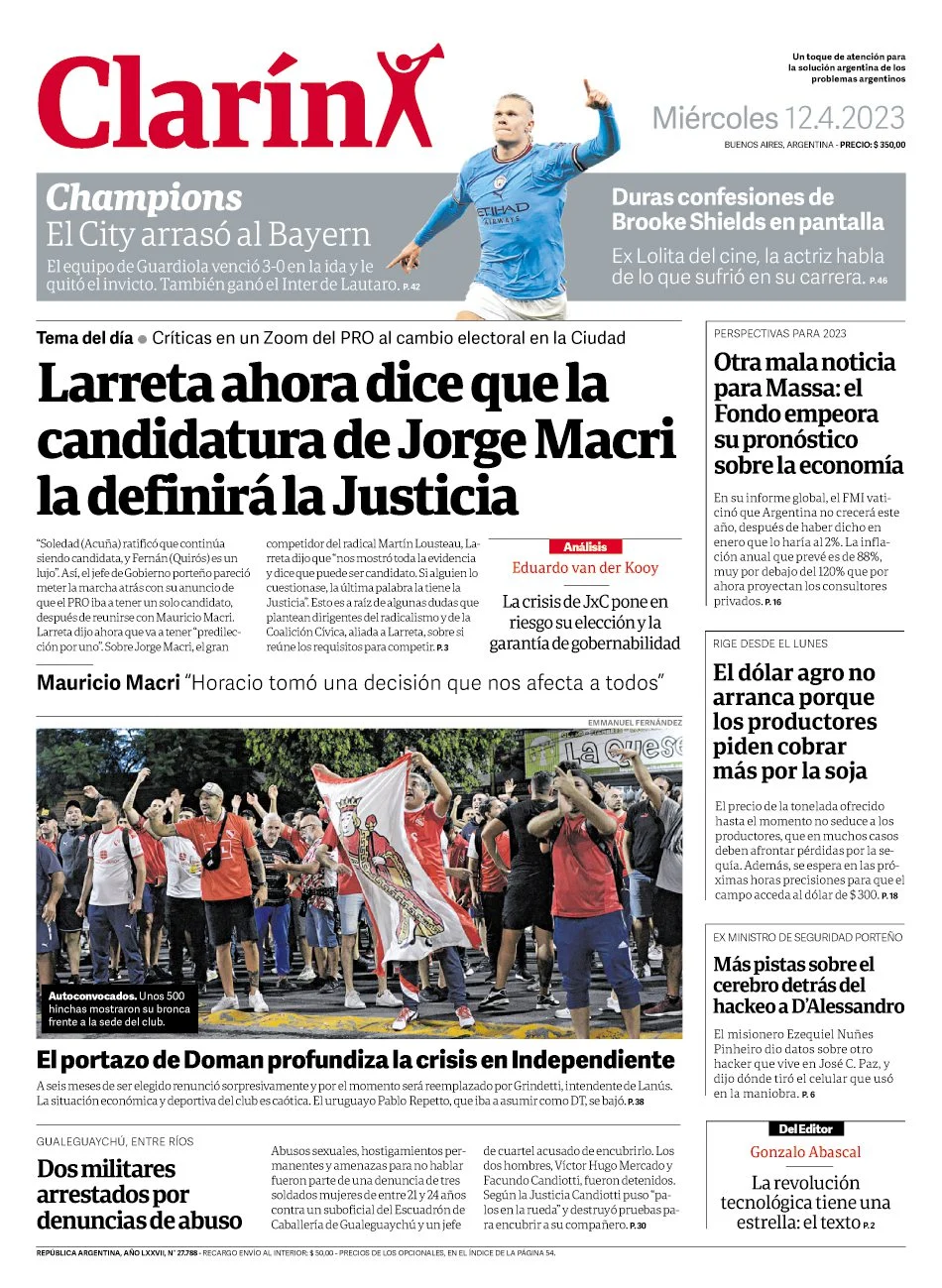 Portadas de diarios nacionales | Miércoles 12 de abril