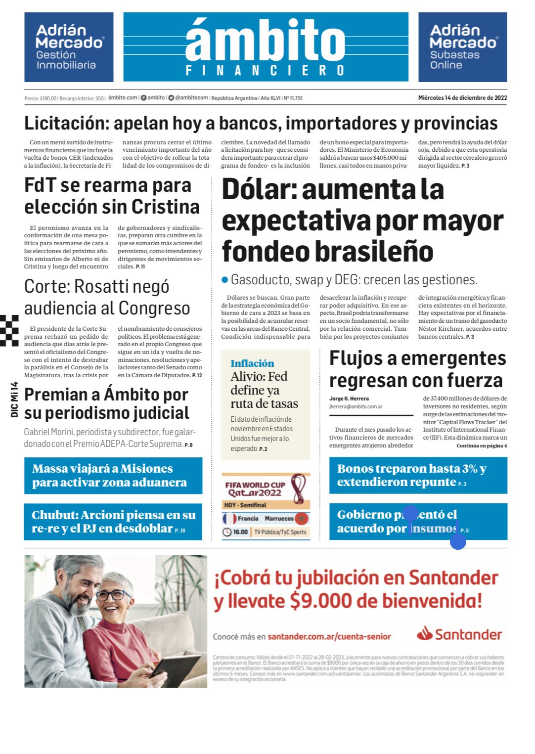 Portadas de diarios nacionales | Miércoles 14 de diciembre