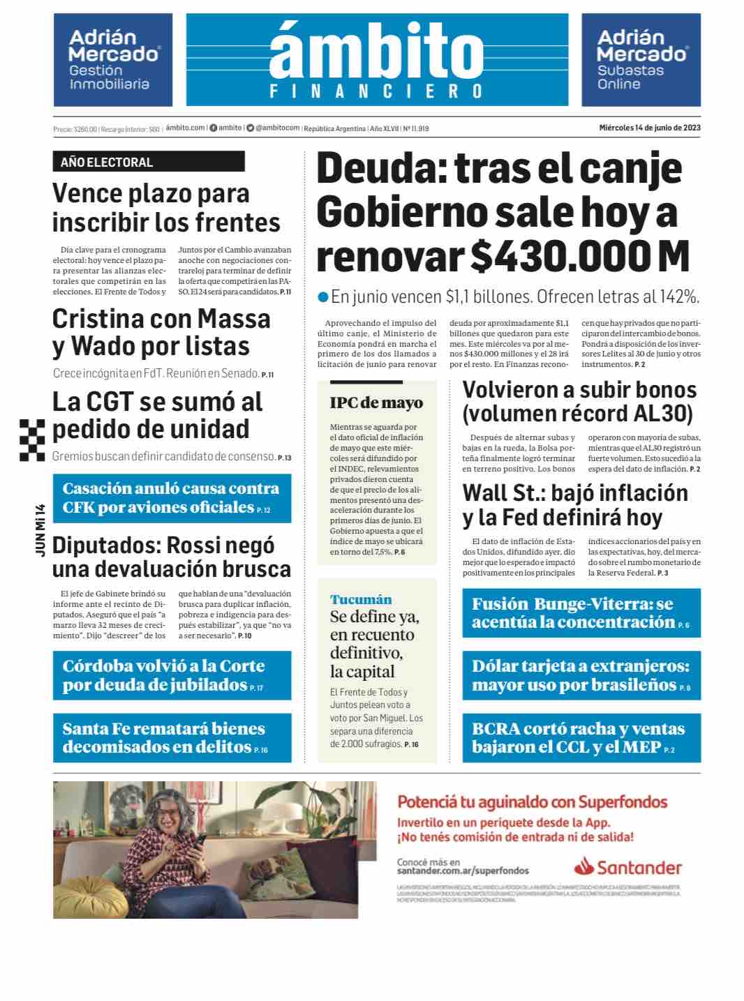 Portadas de diarios nacionales | Miércoles 14 de junio