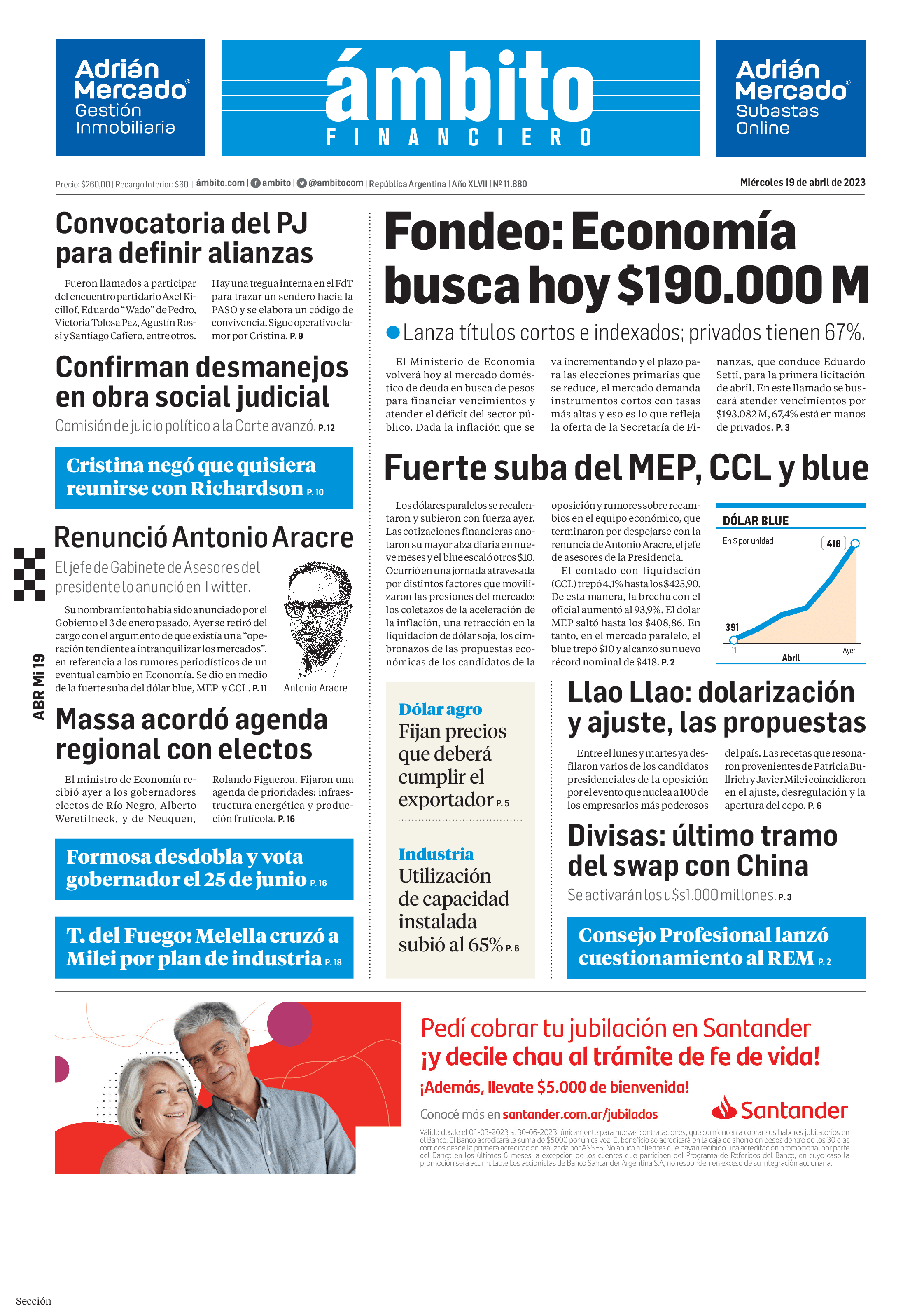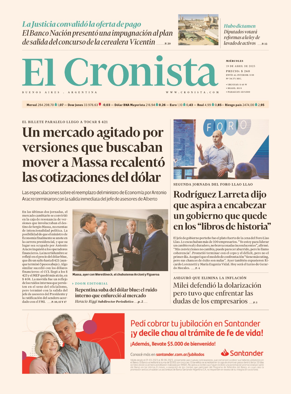 Portadas de diarios nacionales | Miércoles 19 de abril
