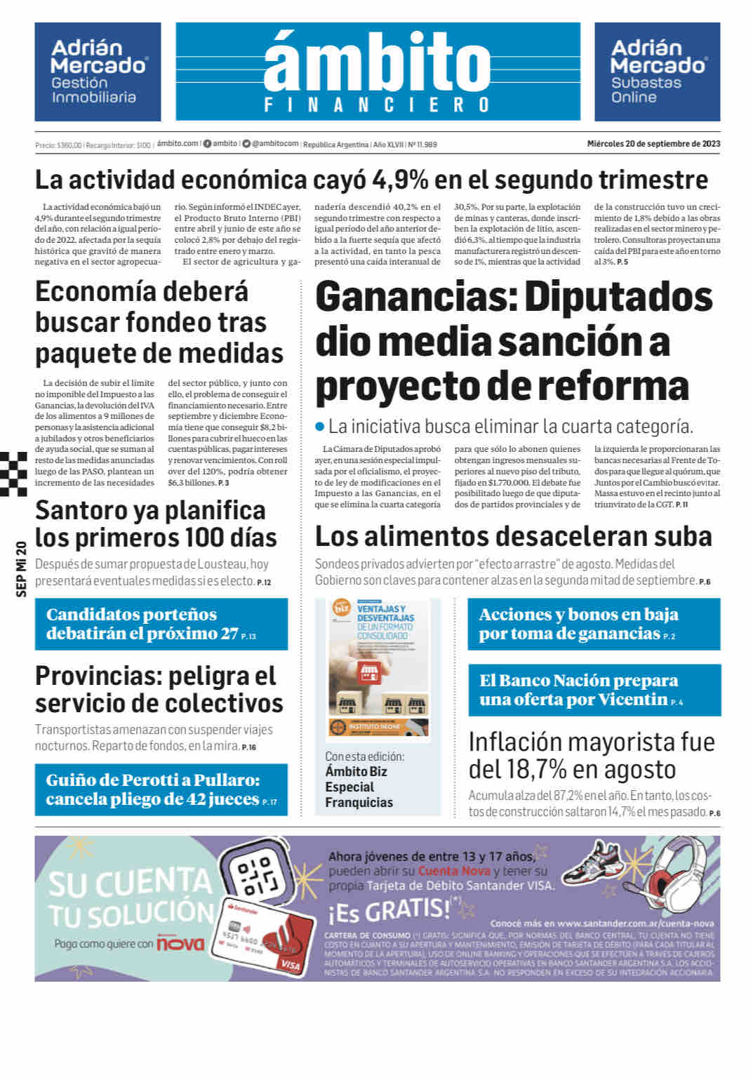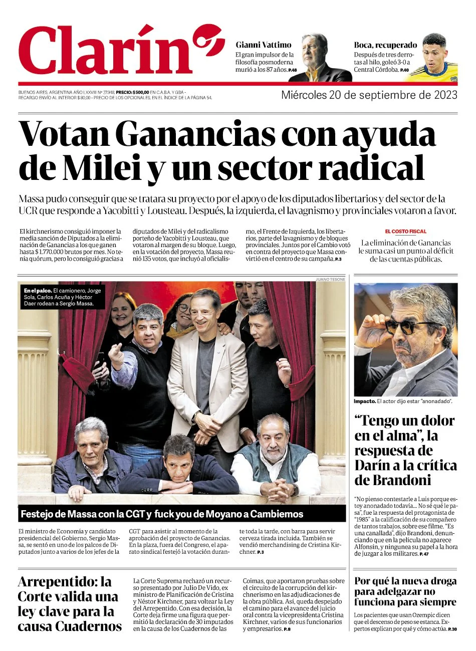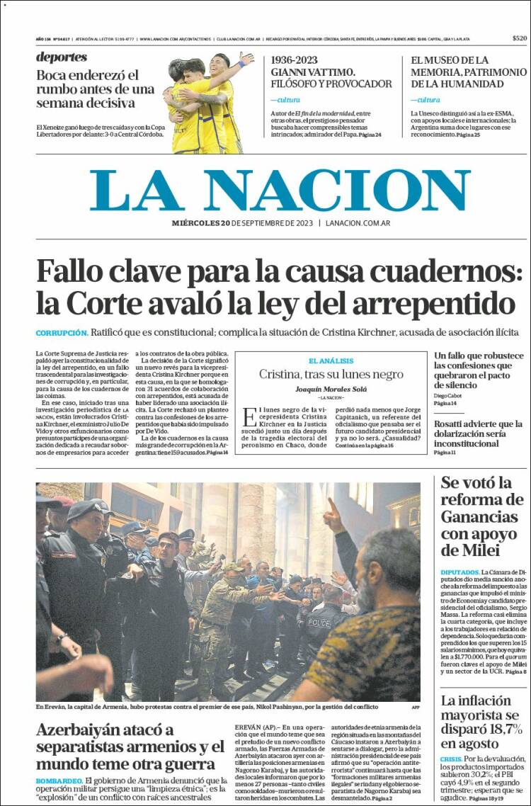 Portadas de diarios nacionales | Miércoles 20 de septiembre