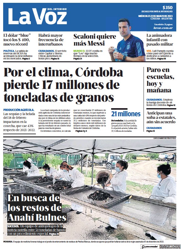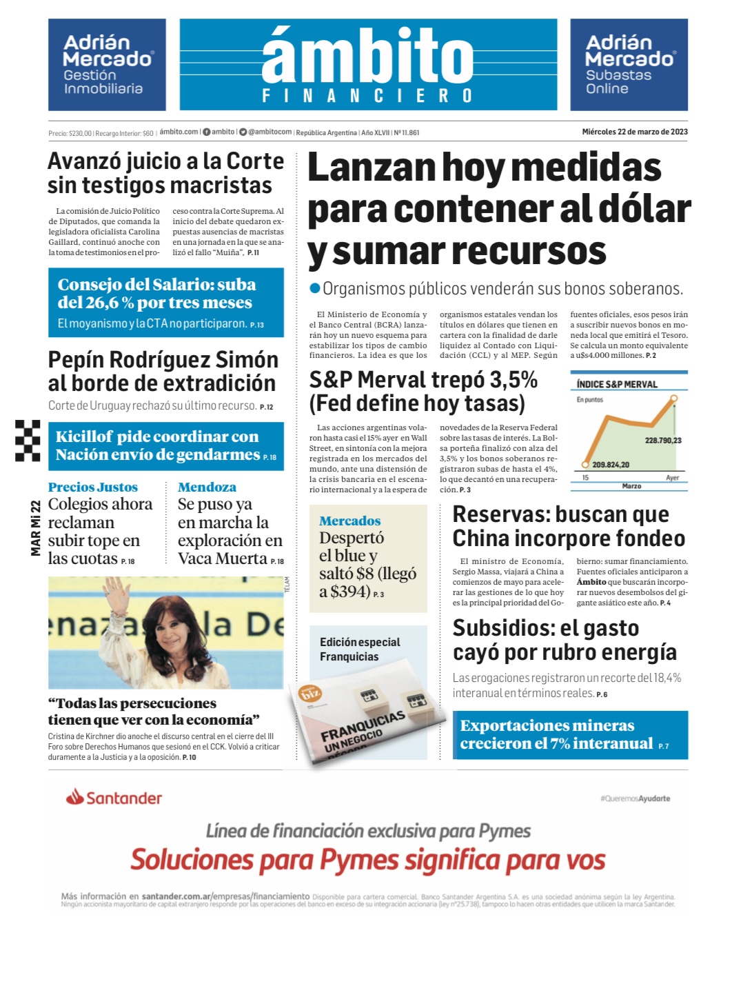 Portadas de diarios nacionales | Miércoles 22 de marzo